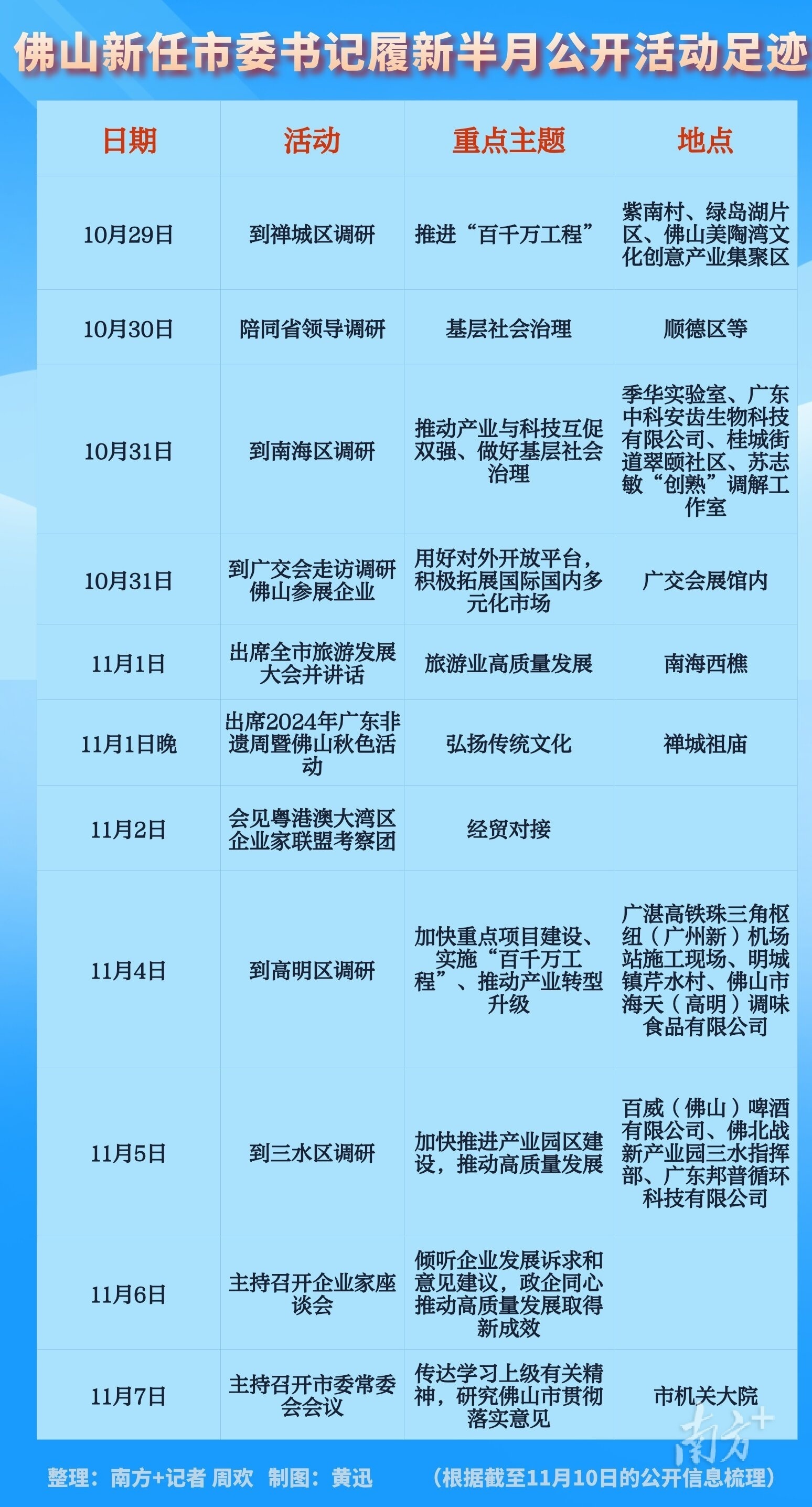 自10月25日到任佛山市委书记以来,唐屹峰去了哪些地方?重点关注什么议题?带来什么新变化、新气象?最近,佛山各界高度关注。