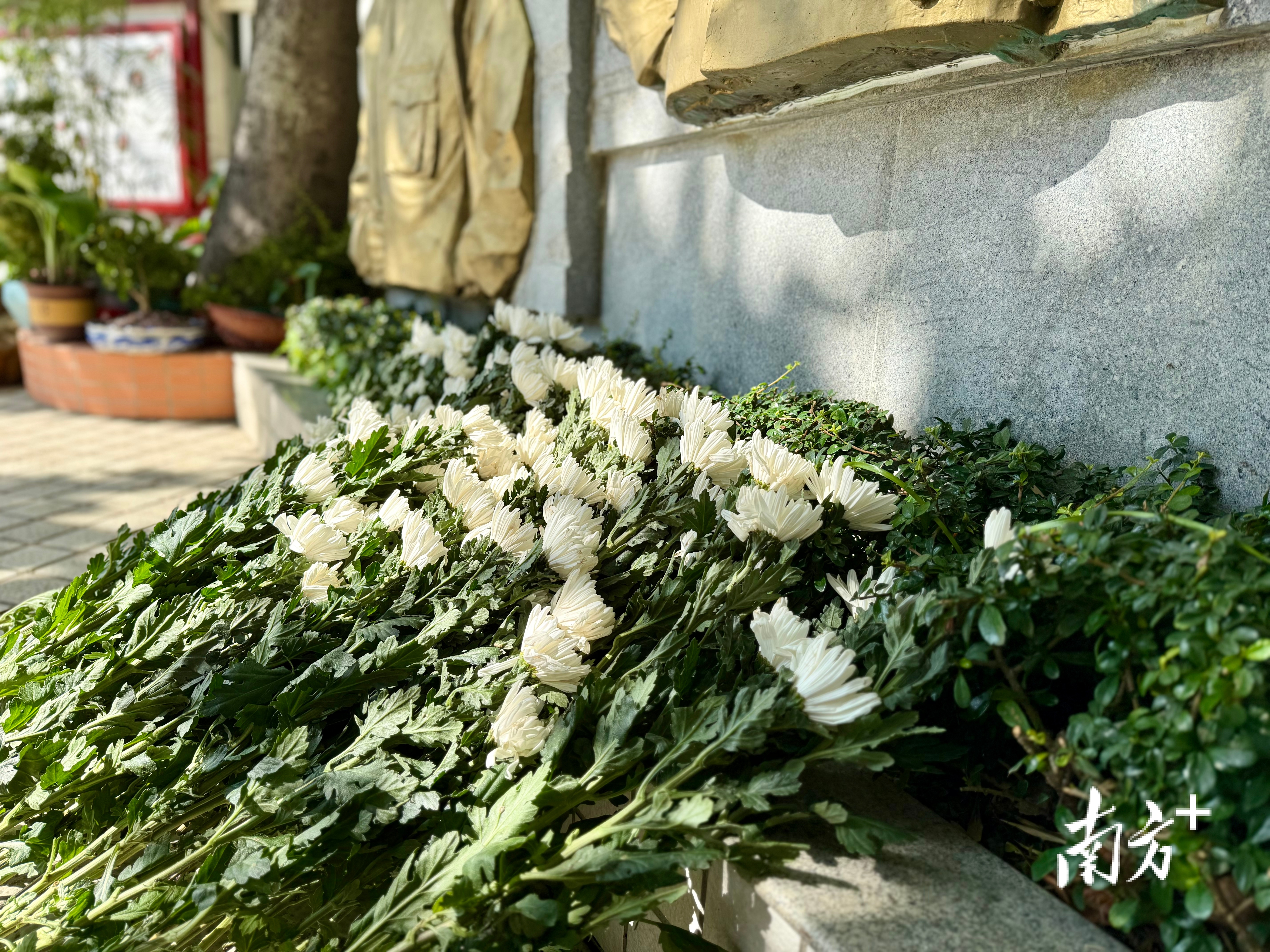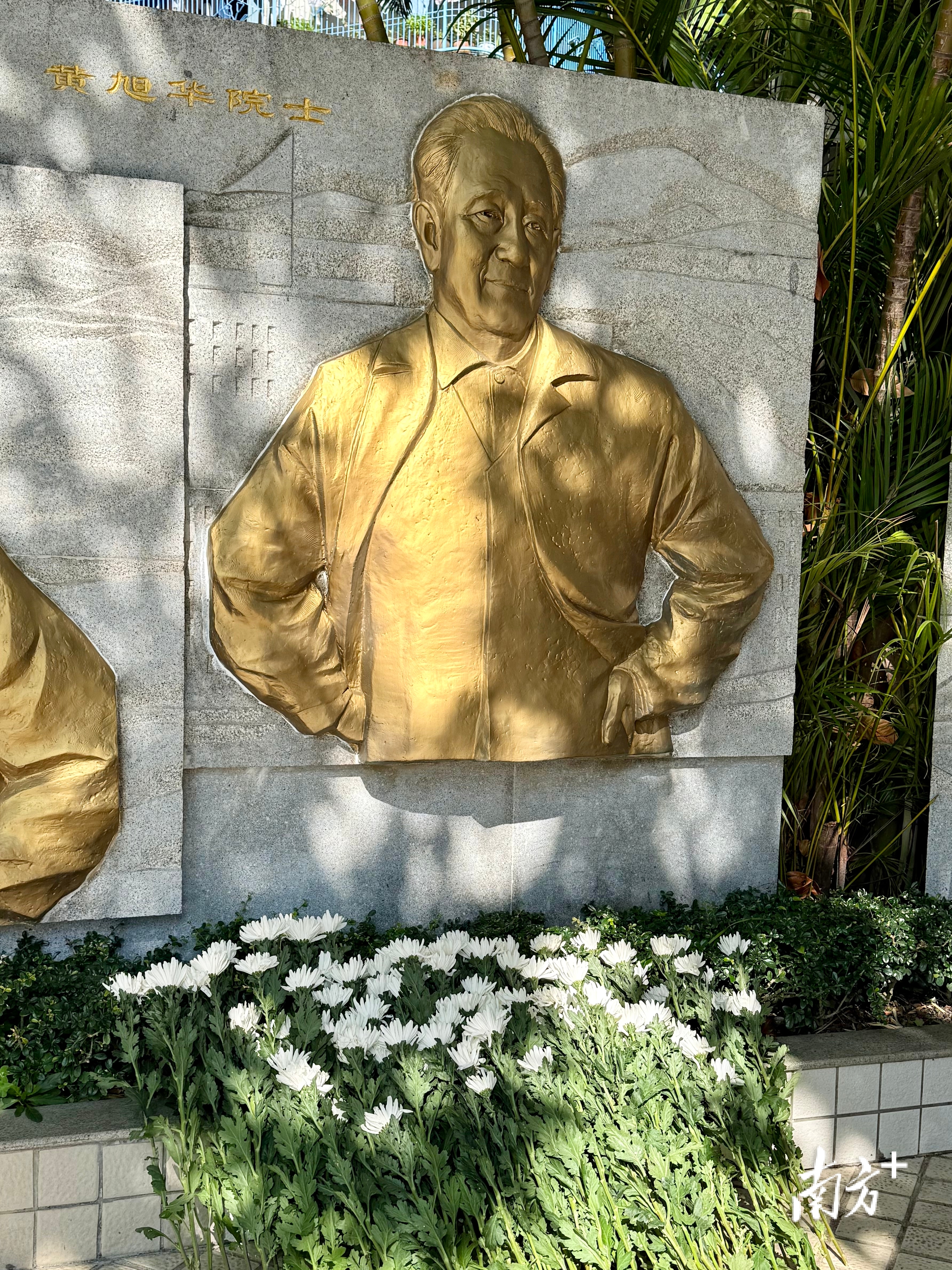汕头市聿怀中学黄旭华铜像前摆满鲜花。