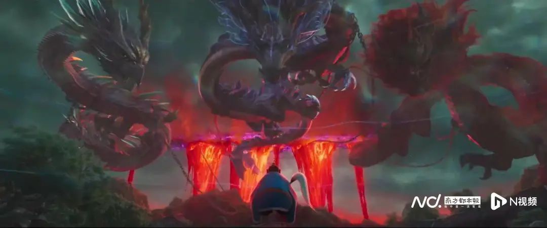 作为全剧高燃情节之一,“万妖冲鼎”的片段令人热血沸腾。此处的配乐,阿鲲却只选用了三个音,从迂回向上到难度陡增再到缓慢上升,层层递进,表现万妖齐心协力、殊死一搏的决心。“高端的食材,往往只需要简单的烹饪方式。”阿鲲笑说。当敖光、敖丙终于冲鼎而出,他又将唢呐和交响曲相结合,“中西合璧”的阵势渲染了大决战即将到来的战斗氛围。