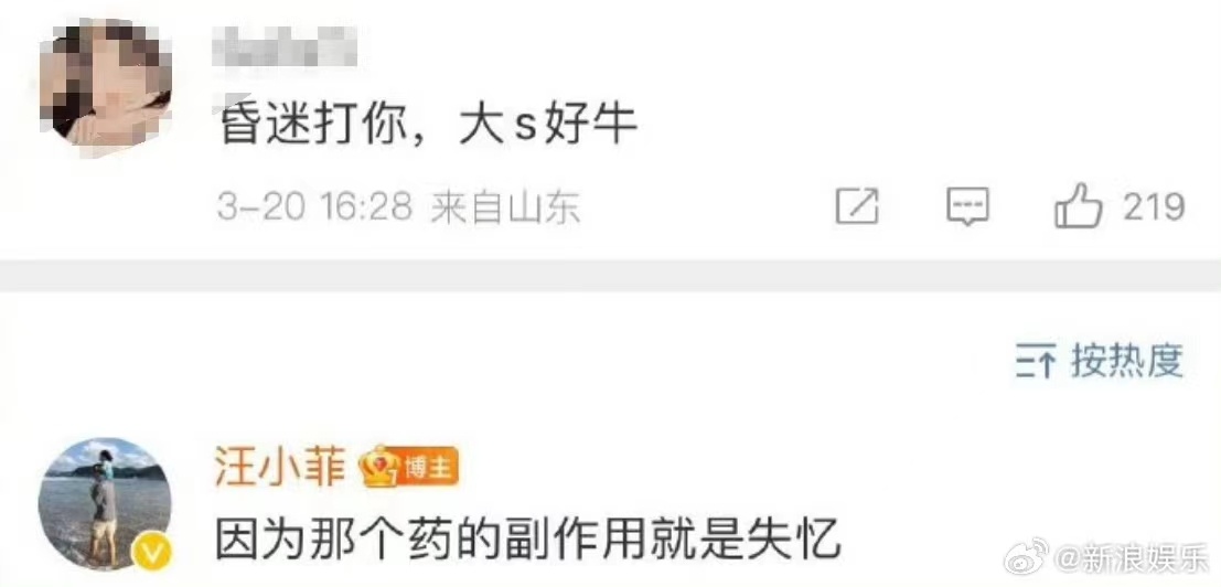 此外,汪小菲在评论区回复网友关于“昏迷打人”的质疑,汪小菲说:“因为那个药的副作用就是失忆。”