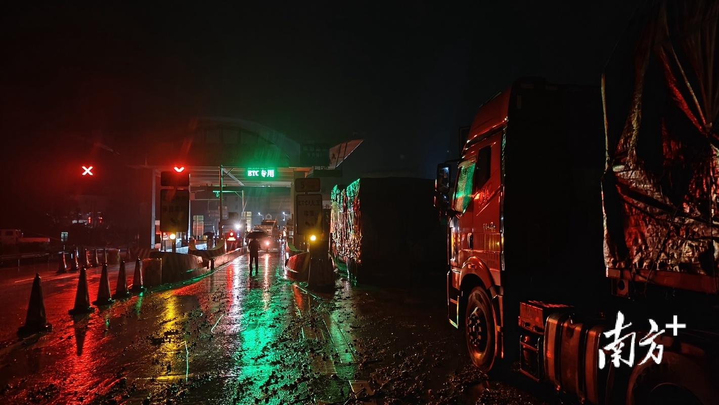 随后,南方+记者步行前往广福高速路口。只见雨势较大,道路已全部被水淹没,水流较急;高速公路岗亭坐着不少人,均为堵车人员。“看这雨时大时小,我们已经做好了准备在高速附近过夜了。”陈女士告诉记者。
