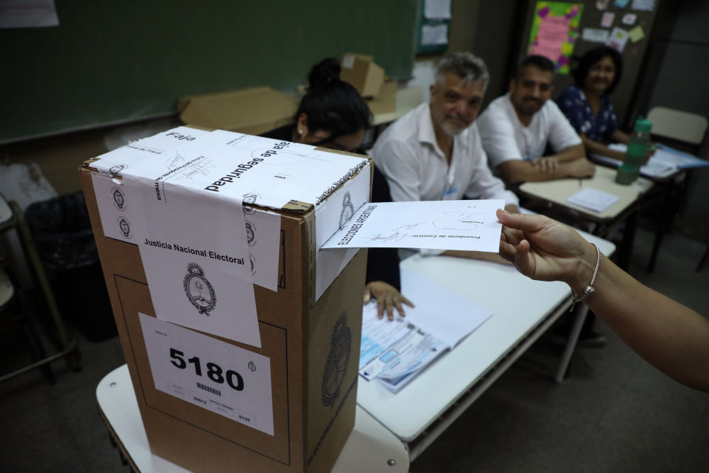 11月19日,选民在阿根廷首都布宜诺斯艾利斯的一处投票站投票。