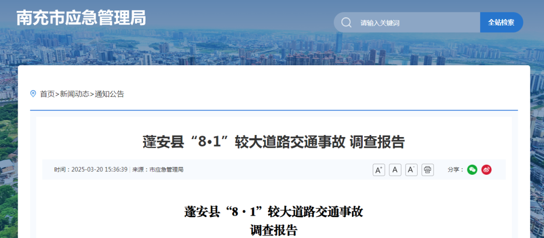 四川南充市应急管理局近日发布《蓬安县“8·1”较大道路交通事故调查报告》。