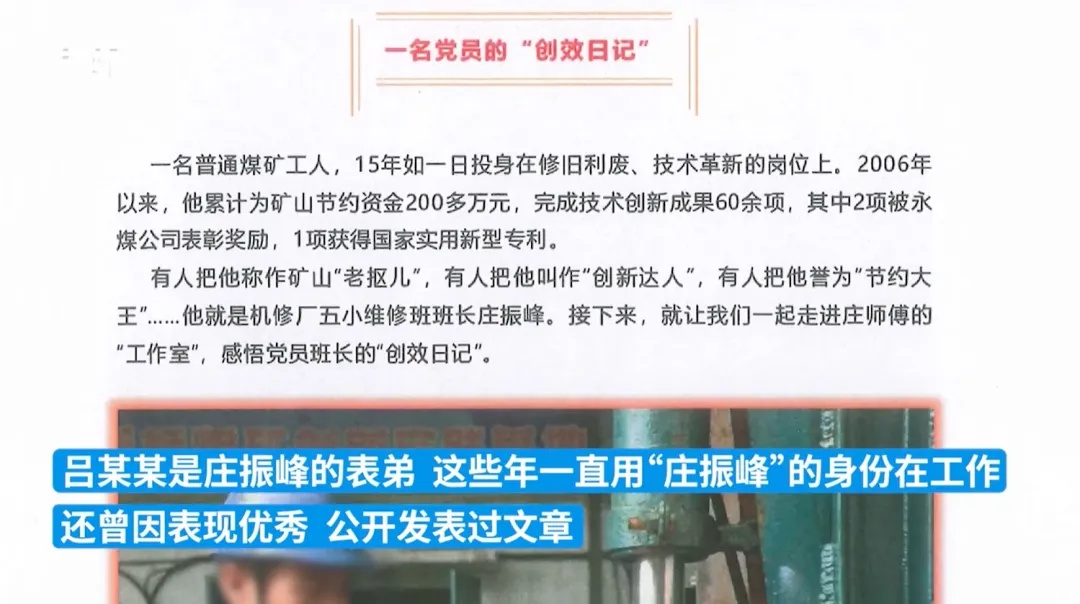 吕某某是庄先生的表弟,这些年一直用“庄振峰”的身份在工作,还曾因表现优秀,公开发表过文章。