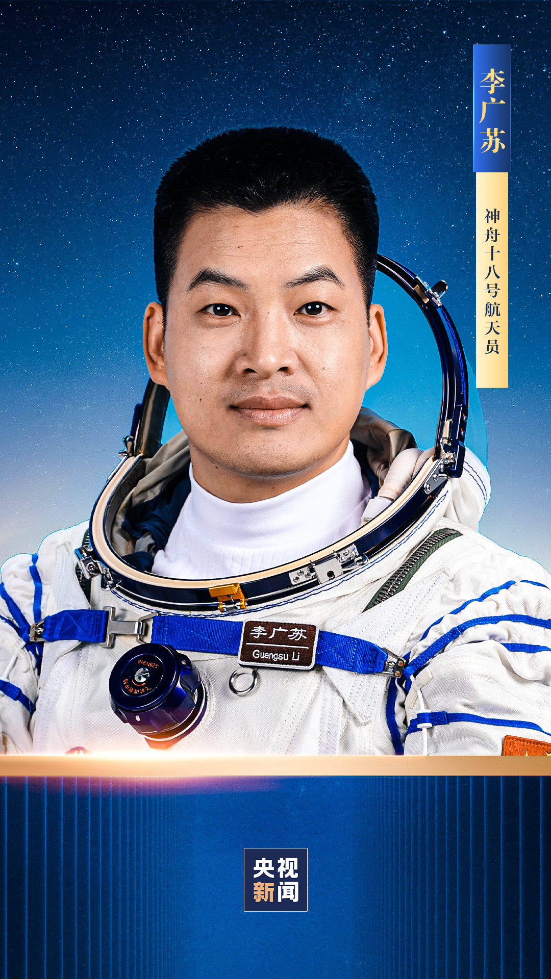 李广苏,男,汉族,籍贯江苏沛县,学士学位。1987年7月出生,2006年9月入伍,2011年6月加入中国共产党,现为中国人民解放军航天员大队四级航天员,空军中校军衔。曾任空军航空兵某旅飞行大队副大队长,被评为空军一级飞行员。2020年9月入选为我国第三批航天员。经全面考评,入选神舟十八号载人飞行任务乘组。