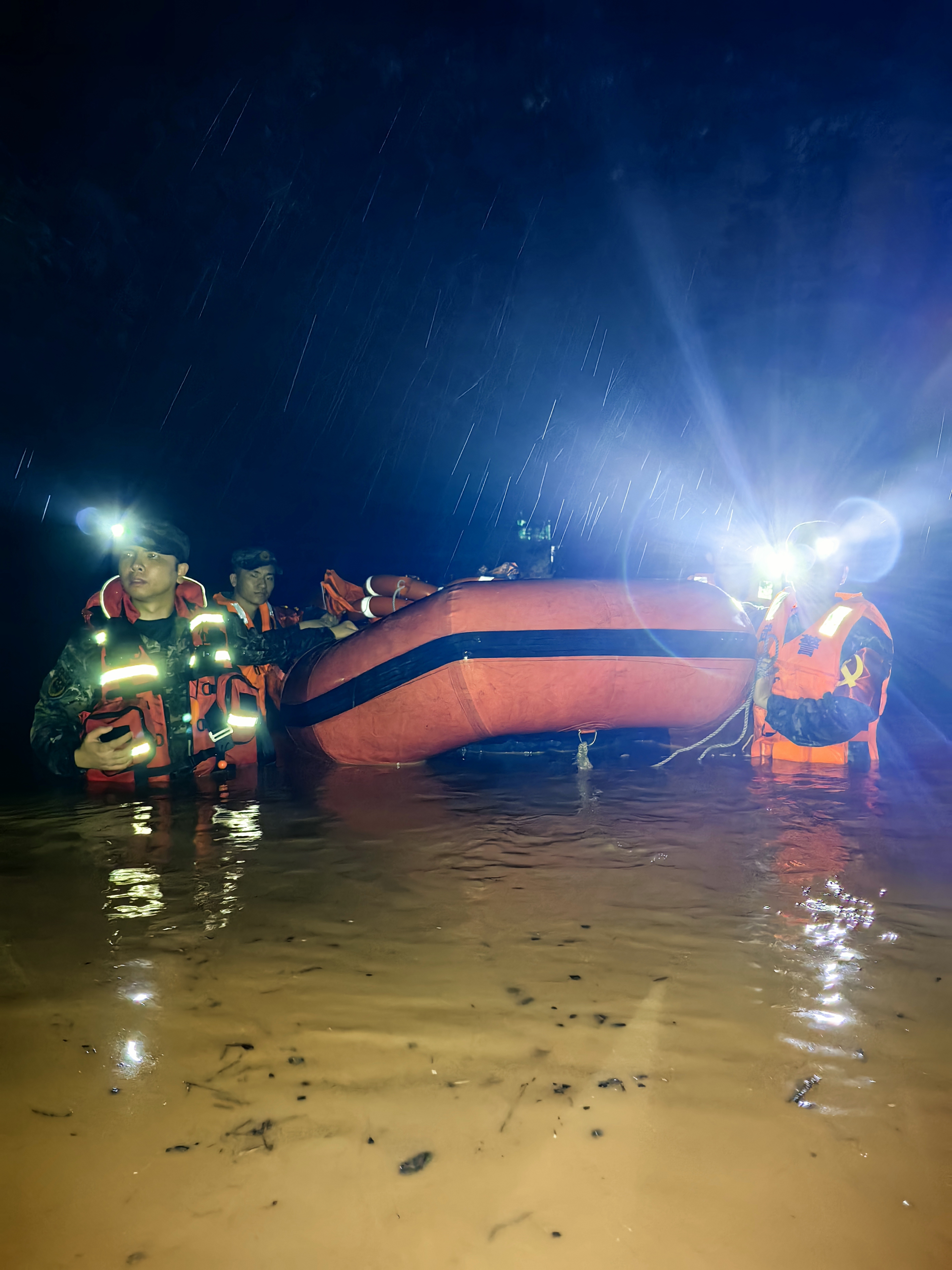 一名刚刚被解救的群众激动得猛抹眼泪:“真没想到这么快就有人来救我们!”“还有200米,前面有战友接应你们。”官兵们耐心安抚着群众情绪,将他们转移到临时安置点,转身又踏进了过腰的泥水之中。