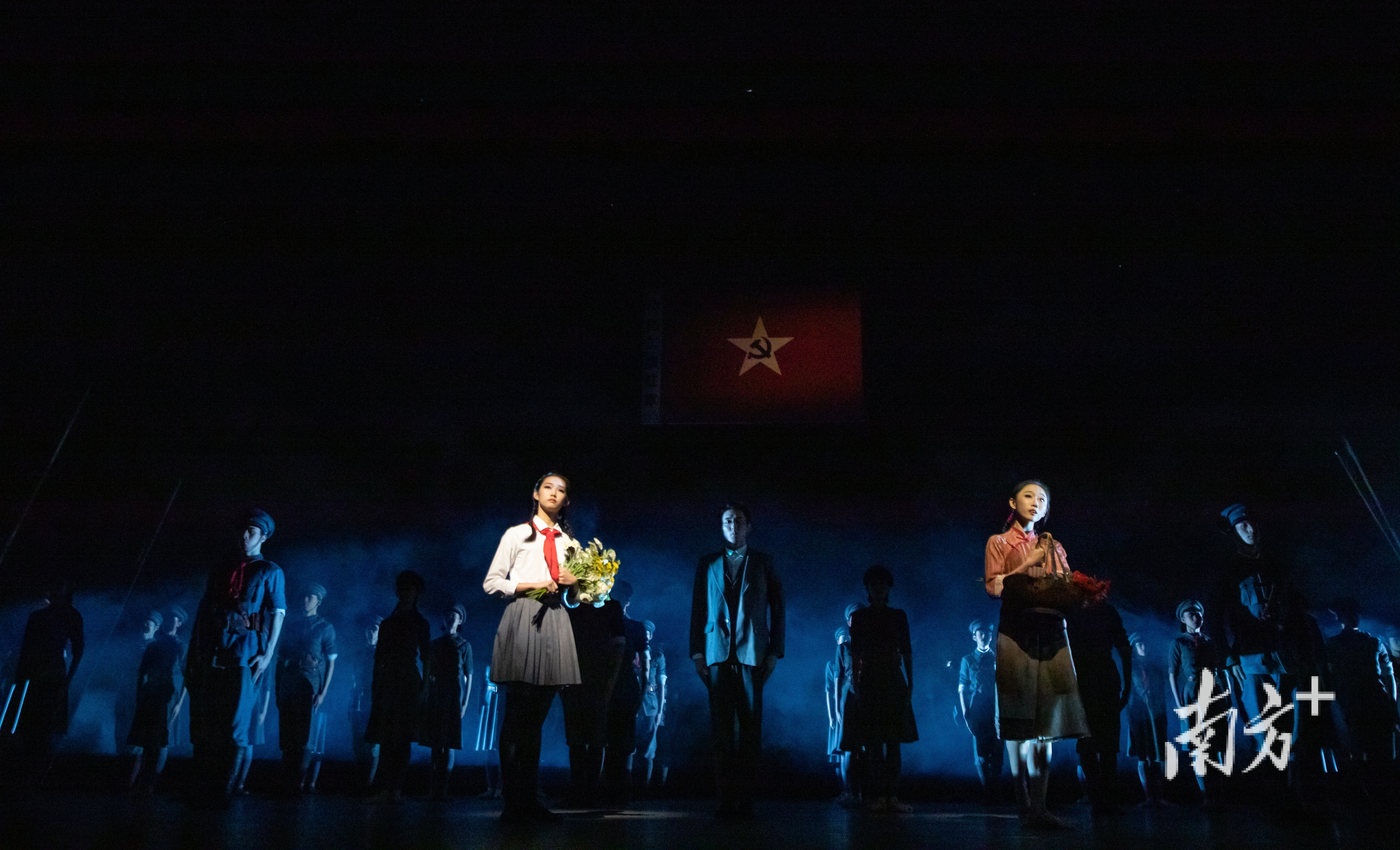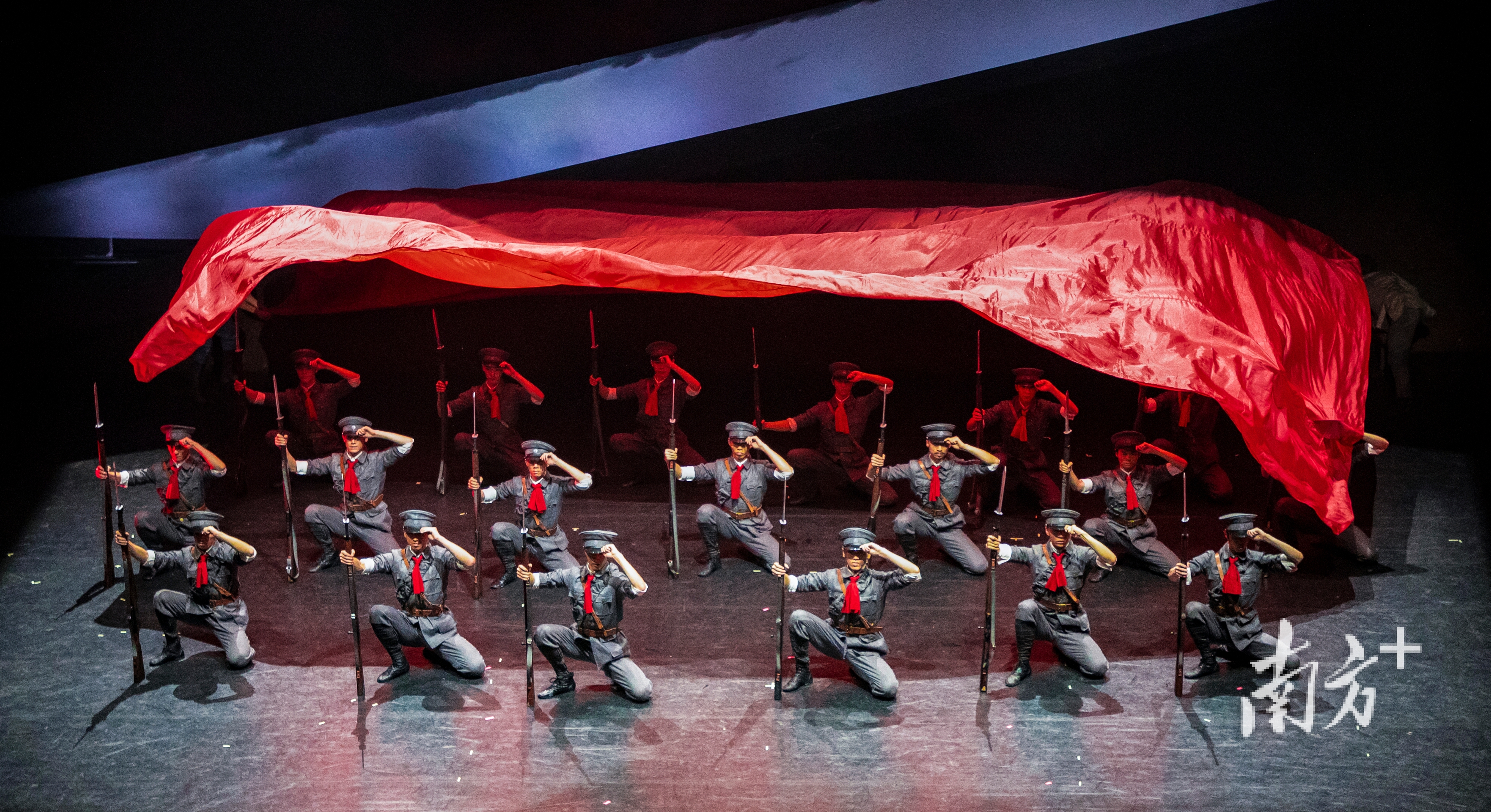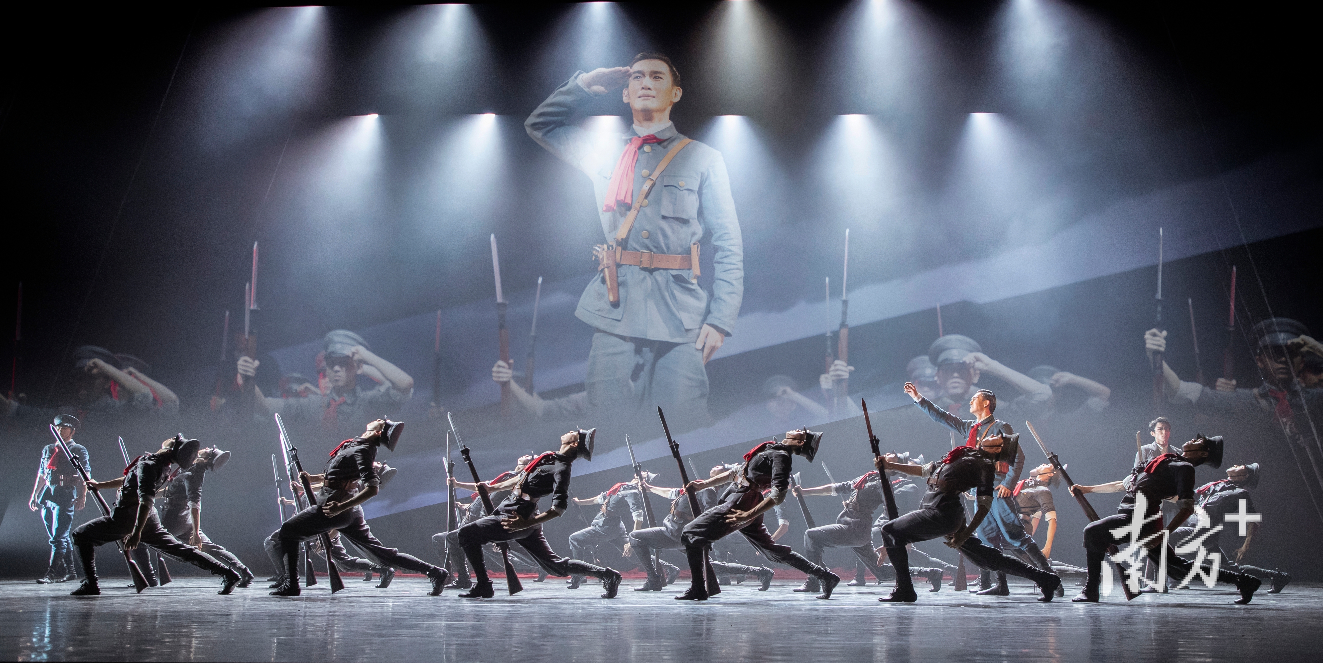 舞台之上,写意的视觉叙事,与贴合当代审美视角与艺术手法的现代编舞交织共振,唤醒深植于几代人记忆中的红色经典,更让“广州起义”的燃情岁月谱写出属于新时代的红色赞歌。