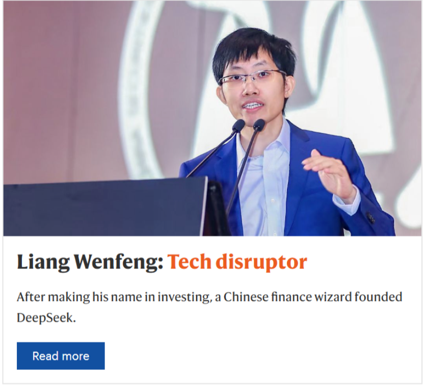 在这份榜单中,梁文锋被誉为“科技颠覆者”。