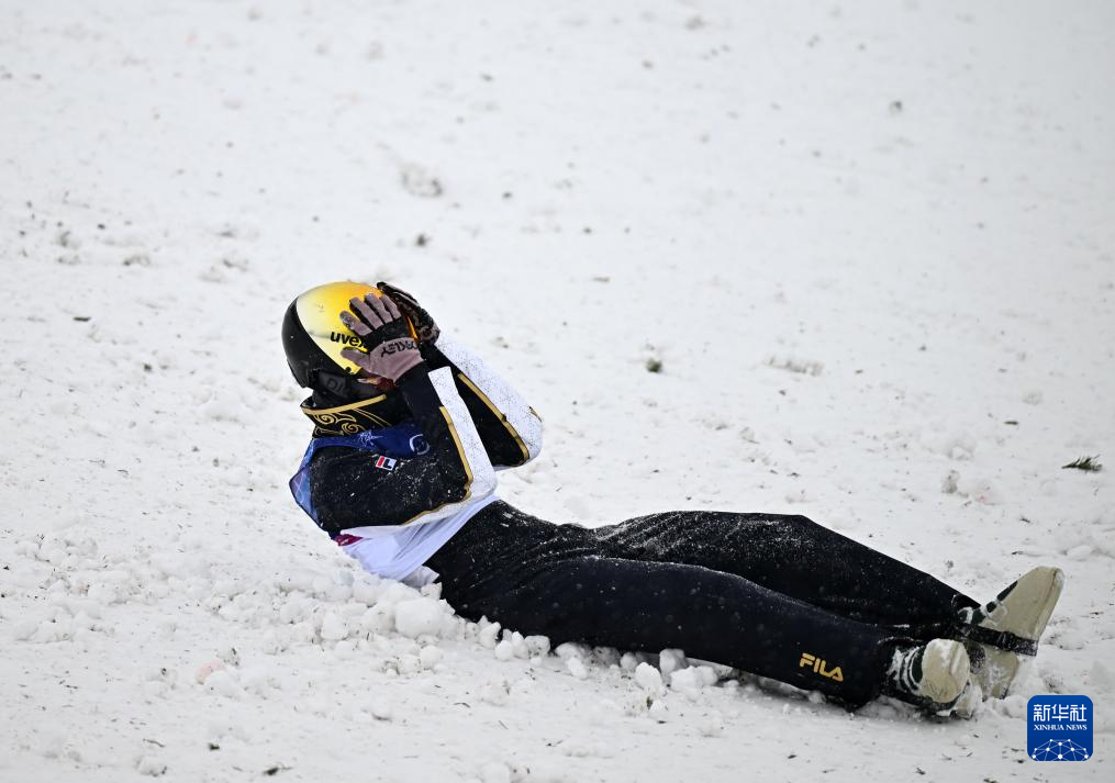 2月21日,中国队选手李天马在第二轮比赛中摔倒后。新华社记者 张宏祥 摄