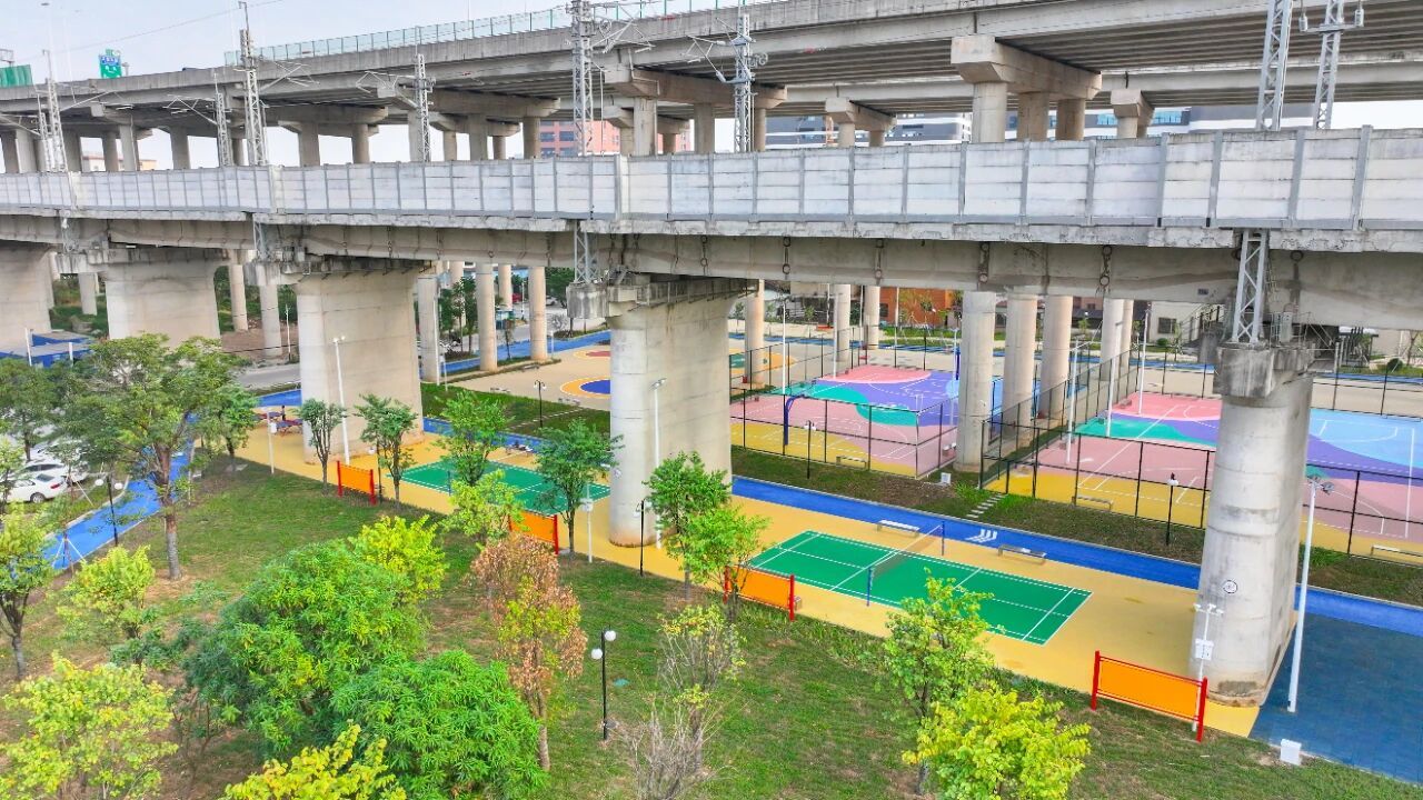 针对全市公路桥梁密布的特征,中山还开“种”出了别具自身特色的绿美新意——桥下公园。例如,位于中山西环高速桥下的小榄埒西一社区儿童公园,对原有荒地进行硬化铺装、增植绿化和配备专业游乐设施;位于广中江高速桥下的东凤镇民乐社区和合健身公园,在建设健身与游乐区设施时开展“拆围透绿”工程,将农房景观、商业街区与河边步道串联。目前,中山已新建成28个桥下公园,干线公路、桥下空间、工业园区新增绿化面积达58万平方米。