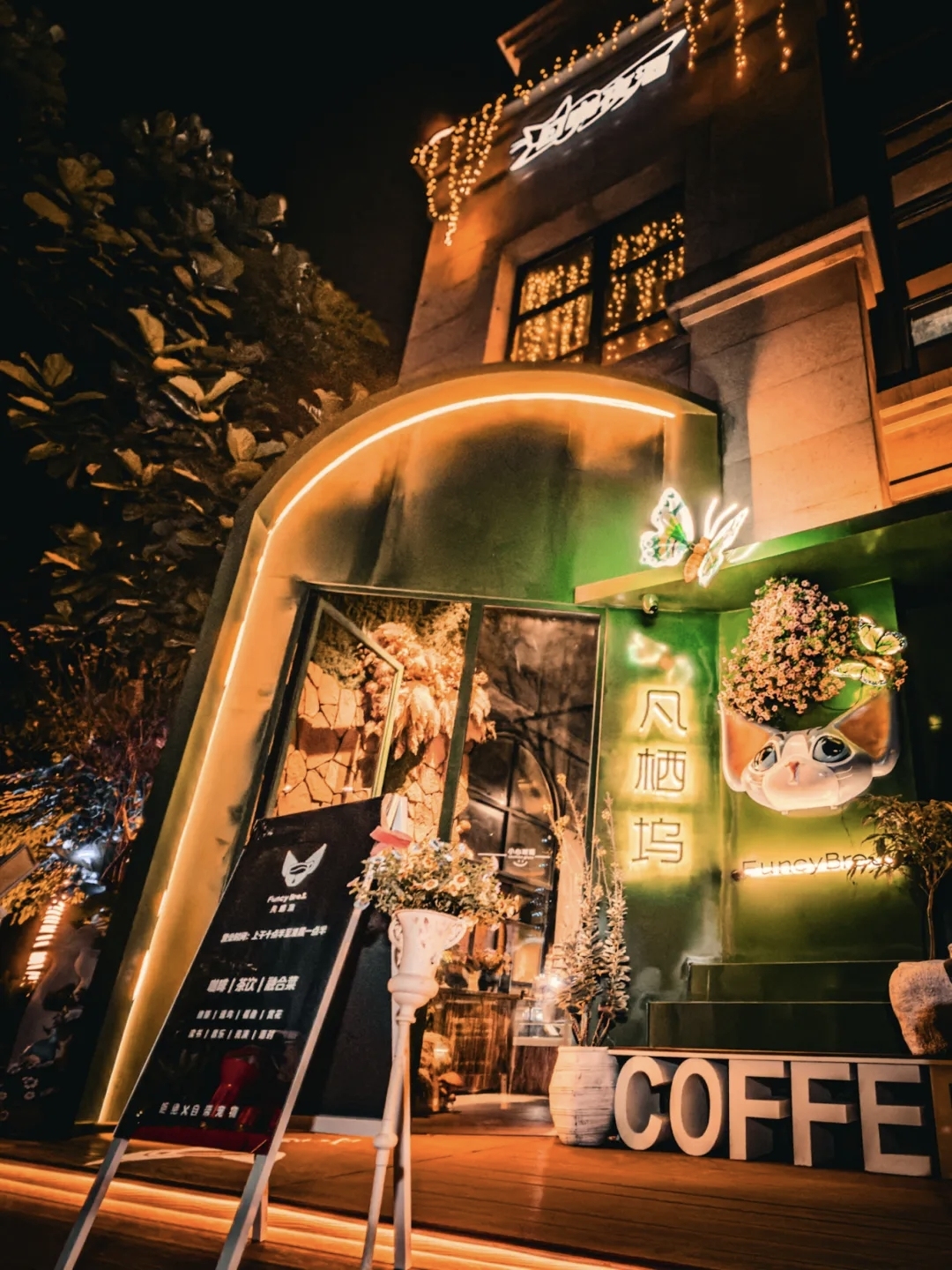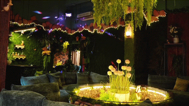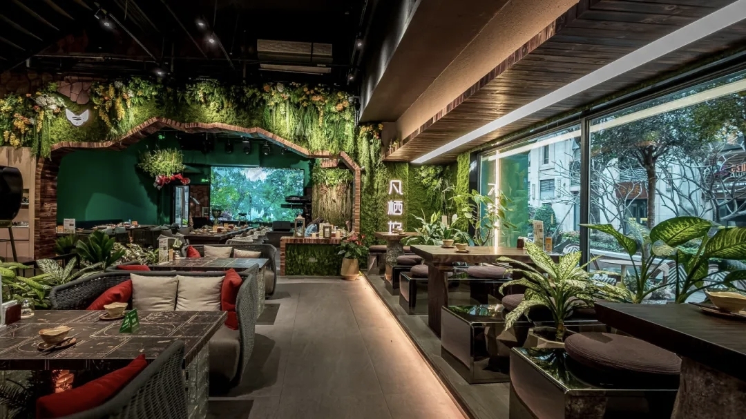 踏入此间,便仿佛闯入爱丽丝的奇幻仙境,上千种植物花卉错落交织,森系绿墙爬满藤蔓,ins风灯饰点缀其中,阳光透过枝叶洒下斑驳光影,每一处细节都藏着对美好的极致追求,坐的、用的、看的皆为店内DIY制作,氛围感拉满。