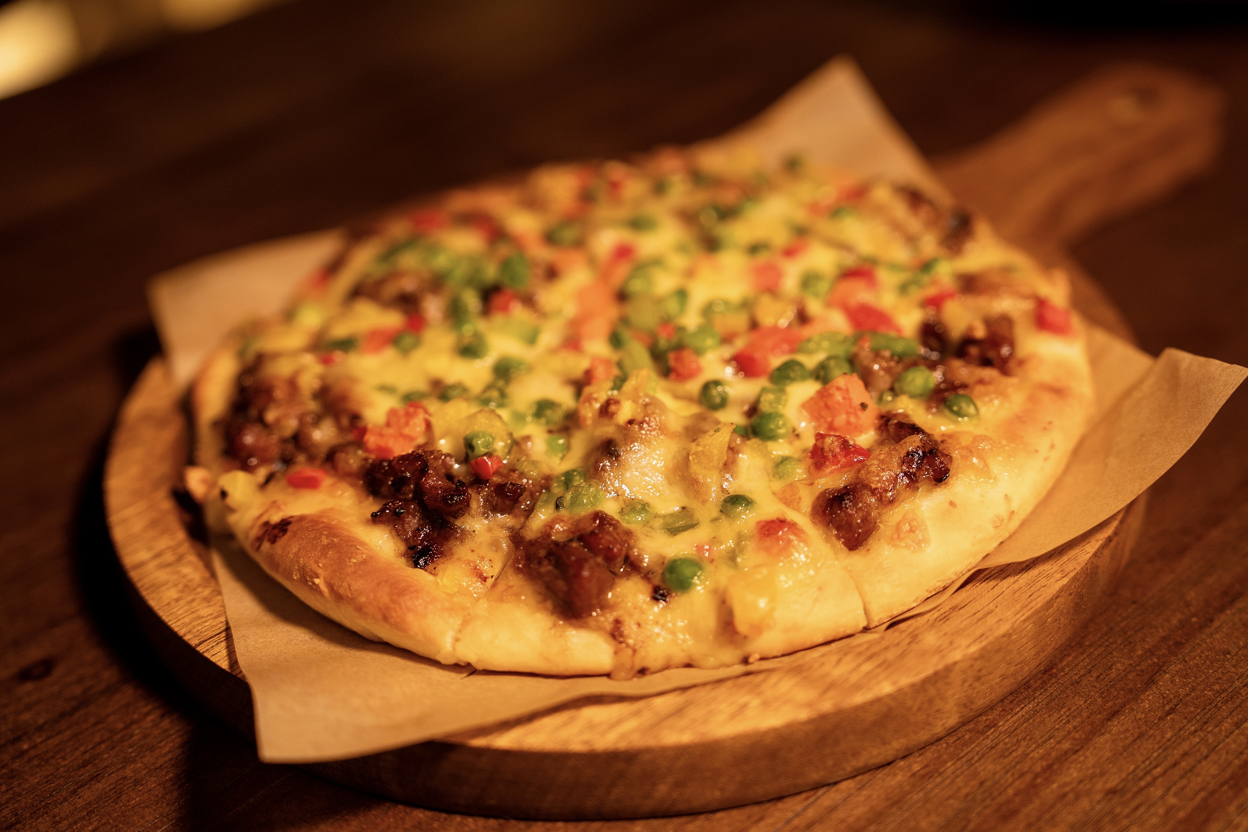 咸甜口爱好者的福音,焦香牛肉粒裹满浓郁照烧酱,芝士拉丝绵长,松软的饼底吸饱酱汁,每一口都是咸香与香甜的完美融合。