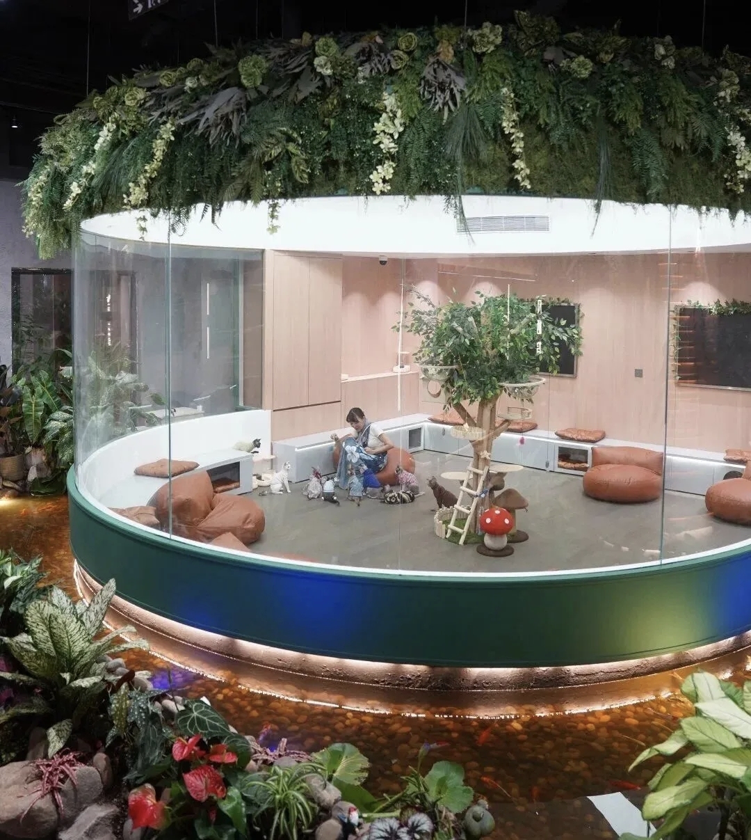 这里也是一座治愈力满分的“mini动物园”。数十只花色齐全的德文猫在这里轮流“打卡上班”,池子里的鱼类自在嬉戏,松弛呆萌的乌龟晒着暖阳,身怀绝技的鹦鹉会表演趣味杂技,还有酷酷的蜥蜴、憨憨的角蛙和寄居蟹,各类奇妙生灵在此和谐共生。孩子们可以近距离观察自然万物,大人们也能在和小动物的互动中放松身心。