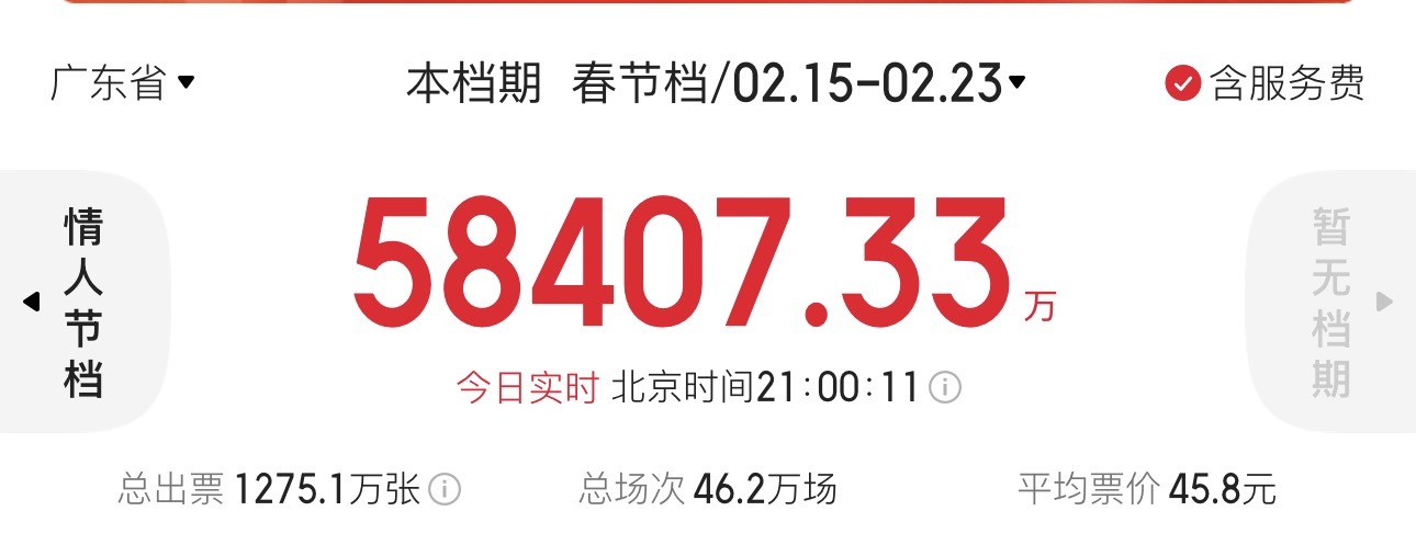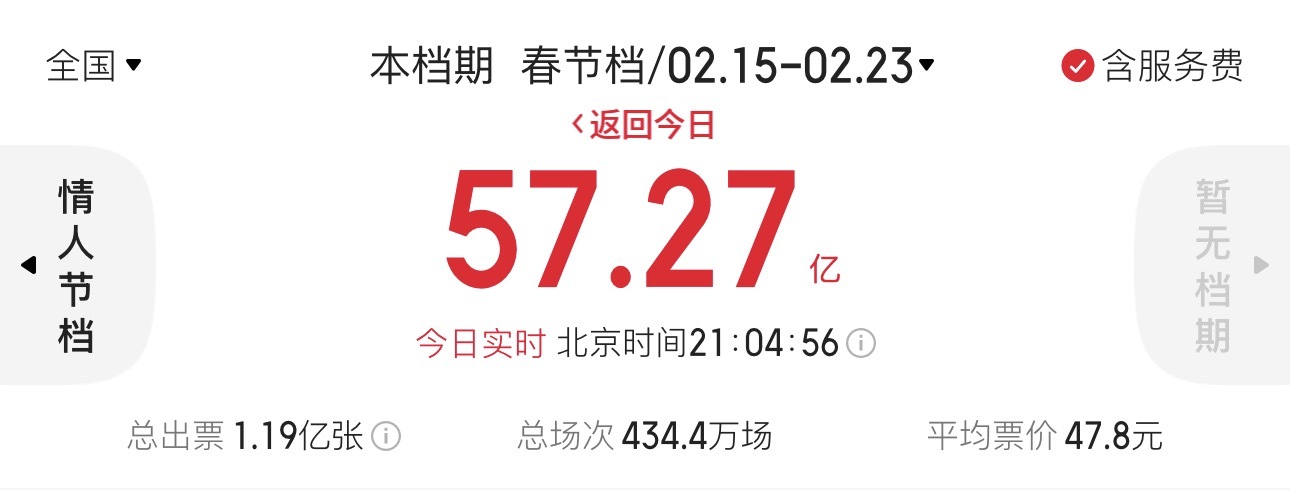 春节档全国票房超57亿元