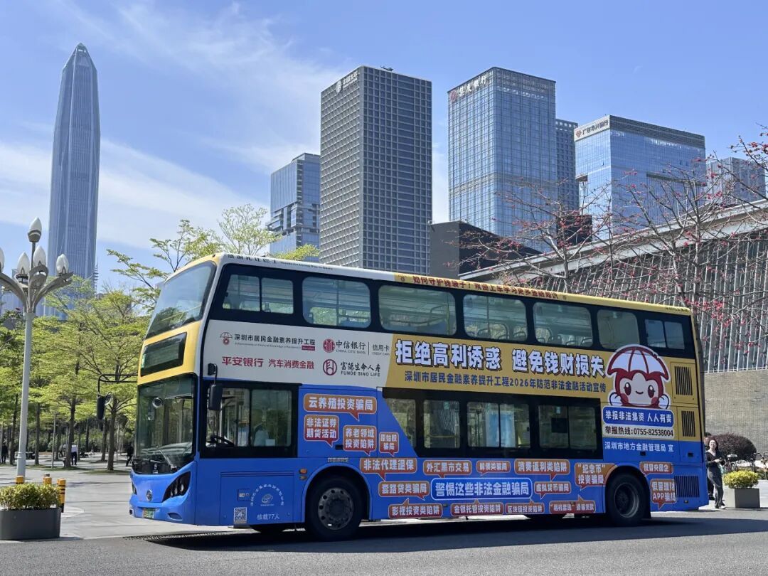 滨海大道旁,一辆精心打造的双层金融巴士格外引人注目。车身遍布防范非法金融活动知识,车内设有专题宣传区、互动学习区,从车椅到扶手,从地面到灯箱,处处可见“警惕金银托管投资陷阱”“警惕云养殖投资陷阱”等风险提示。该巴士将在全市巡展一个月,真正让市民“把金融安全知识带回家”。