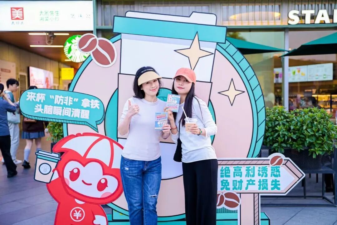 活动深耕商圈消费场景,联合奈雪、霸王茶姬、星巴克推出联名款“防非拿铁”“反诈奶茶”,现场共发放联名款金融知识饮品3000余杯,市民手持“金融知识通关护照”集章闯关,在品味饮品的同时将防非知识“喝”进心里。