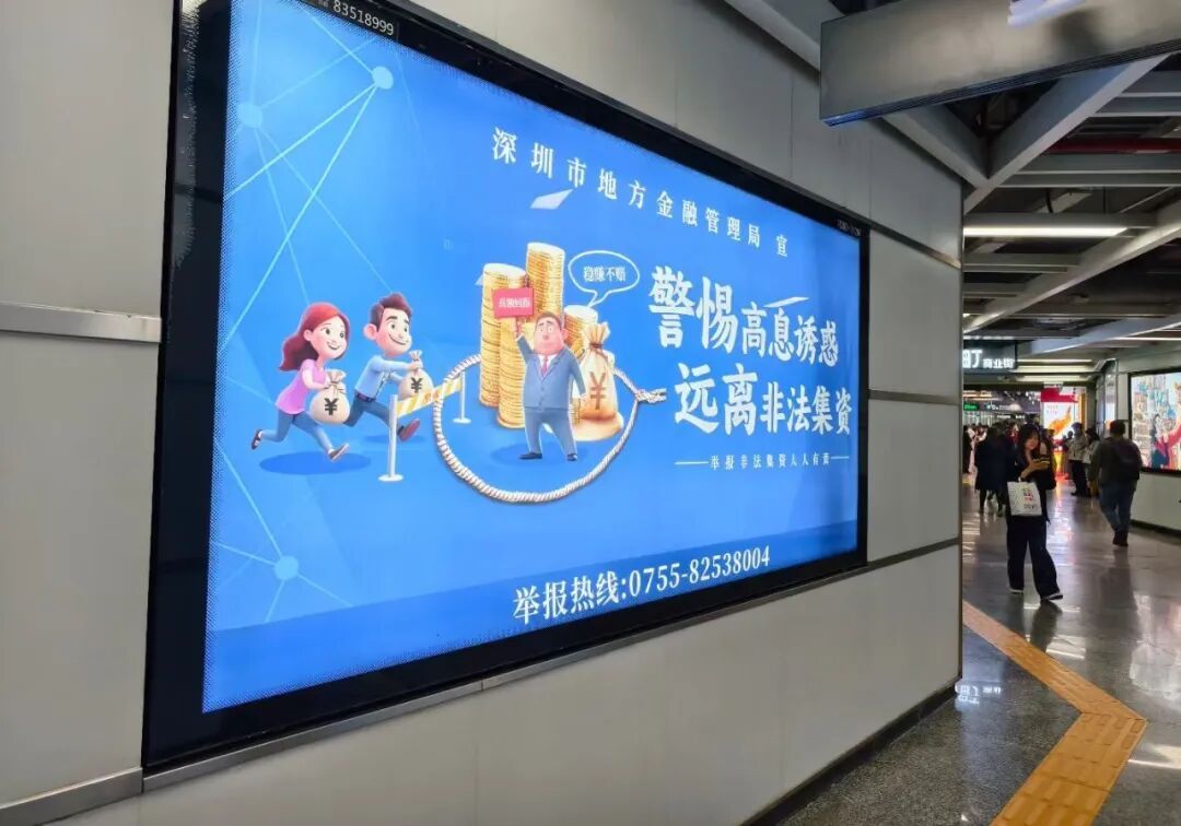 在线下,打造地铁灯箱宣传阵地,在市民中心、深圳湾公园地铁站灯箱,持续轮播防非宣传标语、海报等;在线上,依托各机构官方网站、媒体矩阵,持续开展常态化金融知识普及,推出原创图文、趣味漫画、精品短视频等多元化内容,同时联合微众银行进行线上直播,通过互动讲解、案例剖析等方式,向广大市民普及防范非法集资知识。