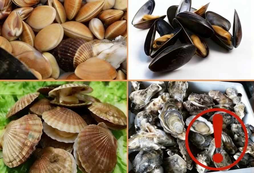 ① 贝类(贻贝、扇贝、蛤蛎、牡蛎、生蚝、蛏子等)