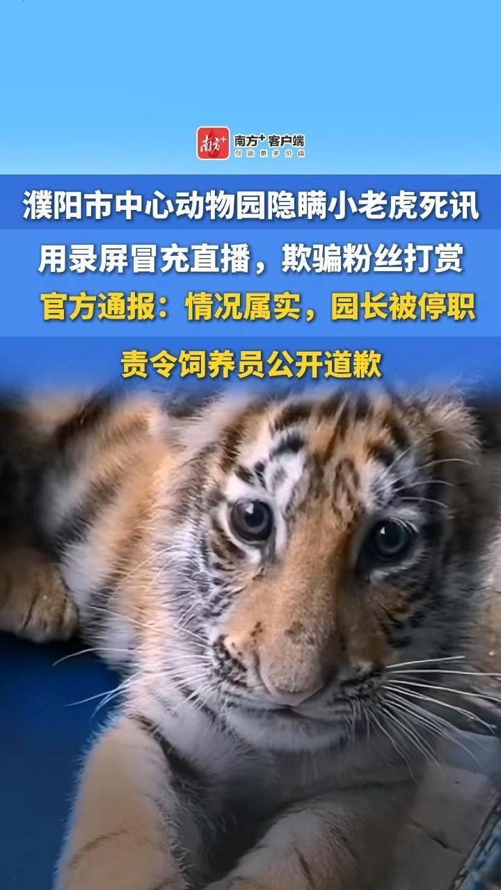 濮阳市中心动物园隐瞒小老虎死讯,用录屏冒充直播,欺骗粉丝打赏,官方通报