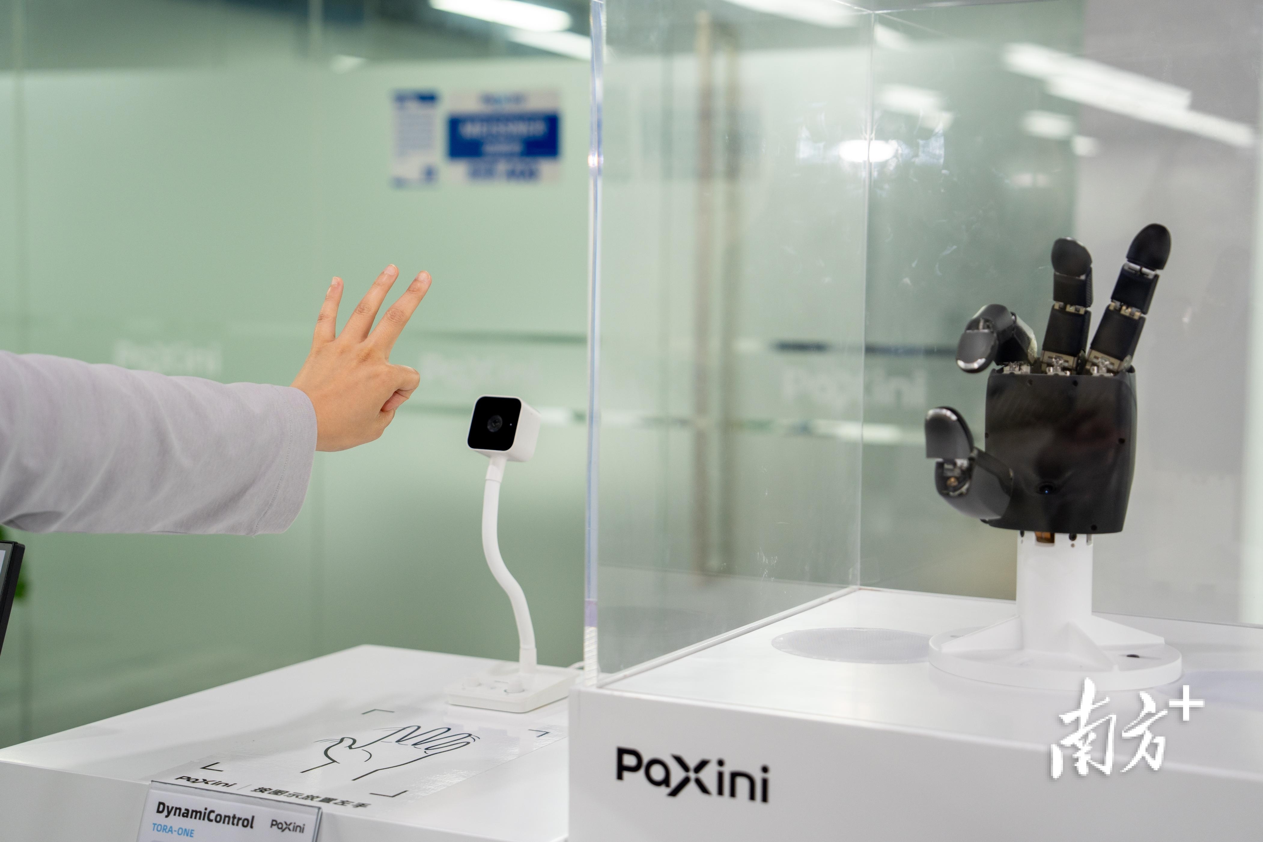 帕西尼的灵巧手模仿观众的手做动作。南方+记者 张令 摄