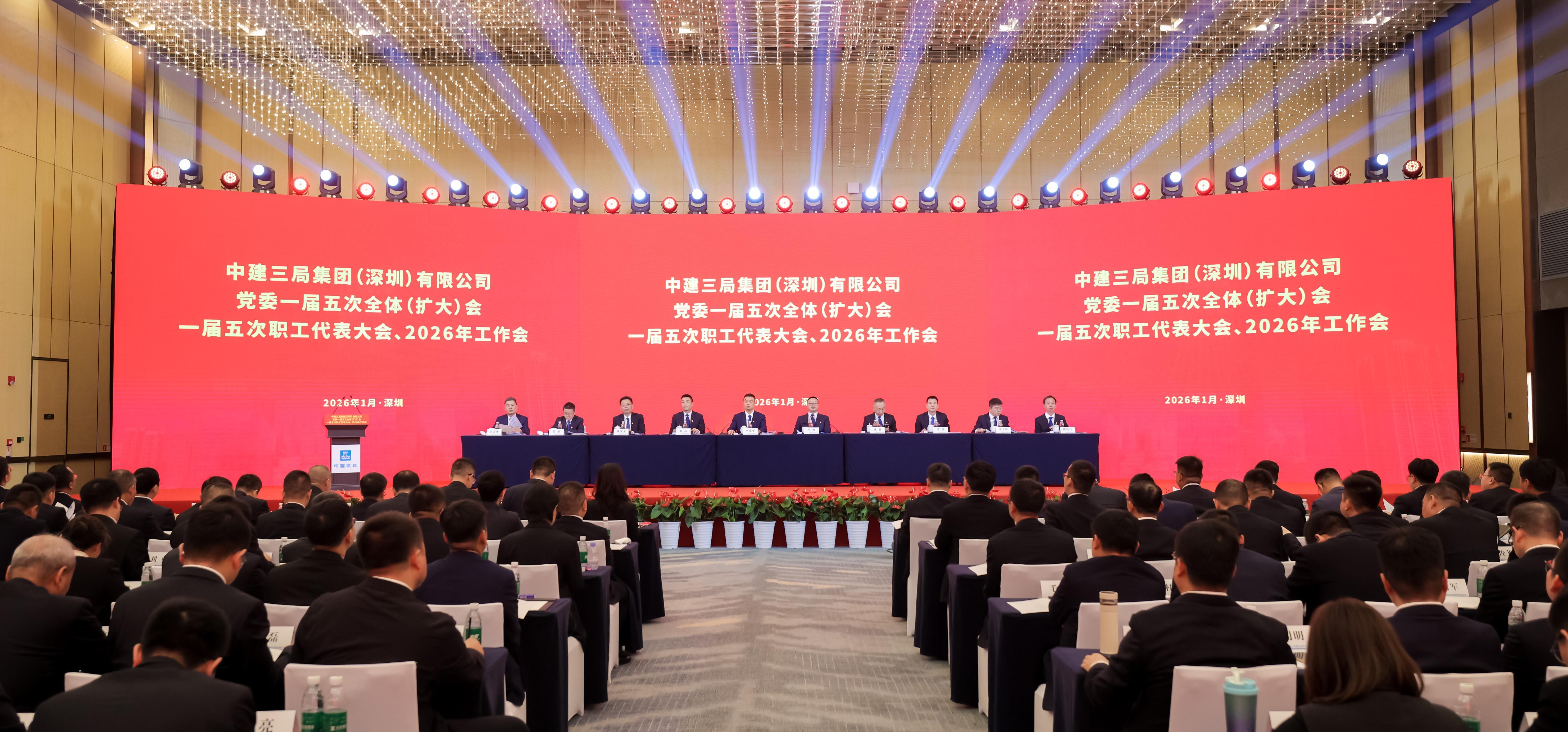 中建三局集团(深圳)有限公司党委一届五次全体(扩大)会、一届五次职工代表大会、2026年工作会。国有企业是中国特色社会主义的重要物质基础和政治基础,是党执政兴国的重要支柱和依靠力量。中建三局集团(深圳)有限公司(以下简称“公司”)立足“国之大者”,将“忠诚担当 使命必达”的文化深深熔铸于企业血脉,以“敢为拼闯 创新争先”的精神状态扎根粤港澳大湾区,以高质量发展实践为强国建设、民族复兴作出积极贡献。