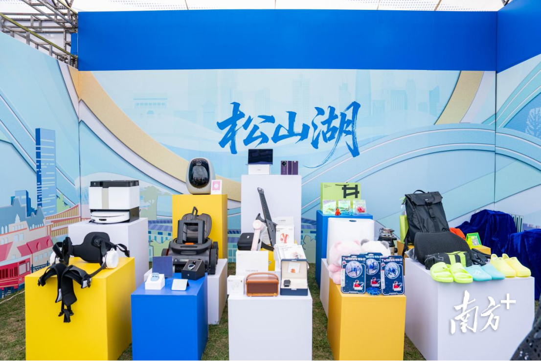 华为、OPPO、vivo携新品入场;拼酷、哈一代、城仕玩具的潮玩展位让孩子们挪不动脚……近200种“东莞优品”涵盖3C电子、潮玩文创、服装箱包、特色食品等品类,34个镇街的特色产品悉数登场。