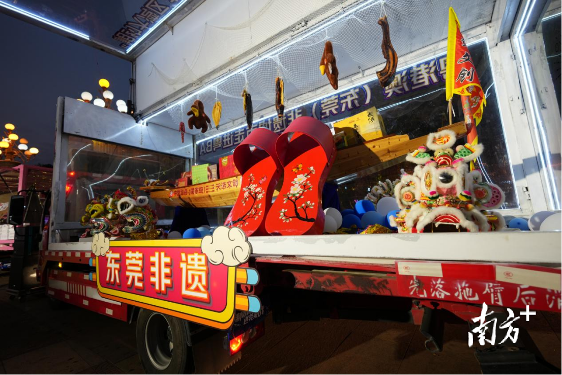 “我们从东莞开了四个多小时过来的。”大篷车司机拍了拍车门,笑着说。十辆车、十个主题,从篮球名宿签名球衣到莞邑咖啡香韵,从华为、OPPO的智能科技到拼酷哈一代的潮玩手办,从厚街腊味到美味烧鹅,还有千角灯、莞香、莞草编织等非遗瑰宝,东莞把家底搬上了客场,一字排开在异乡的赛场外——它们不是来比赛的,是来“撑场”的。