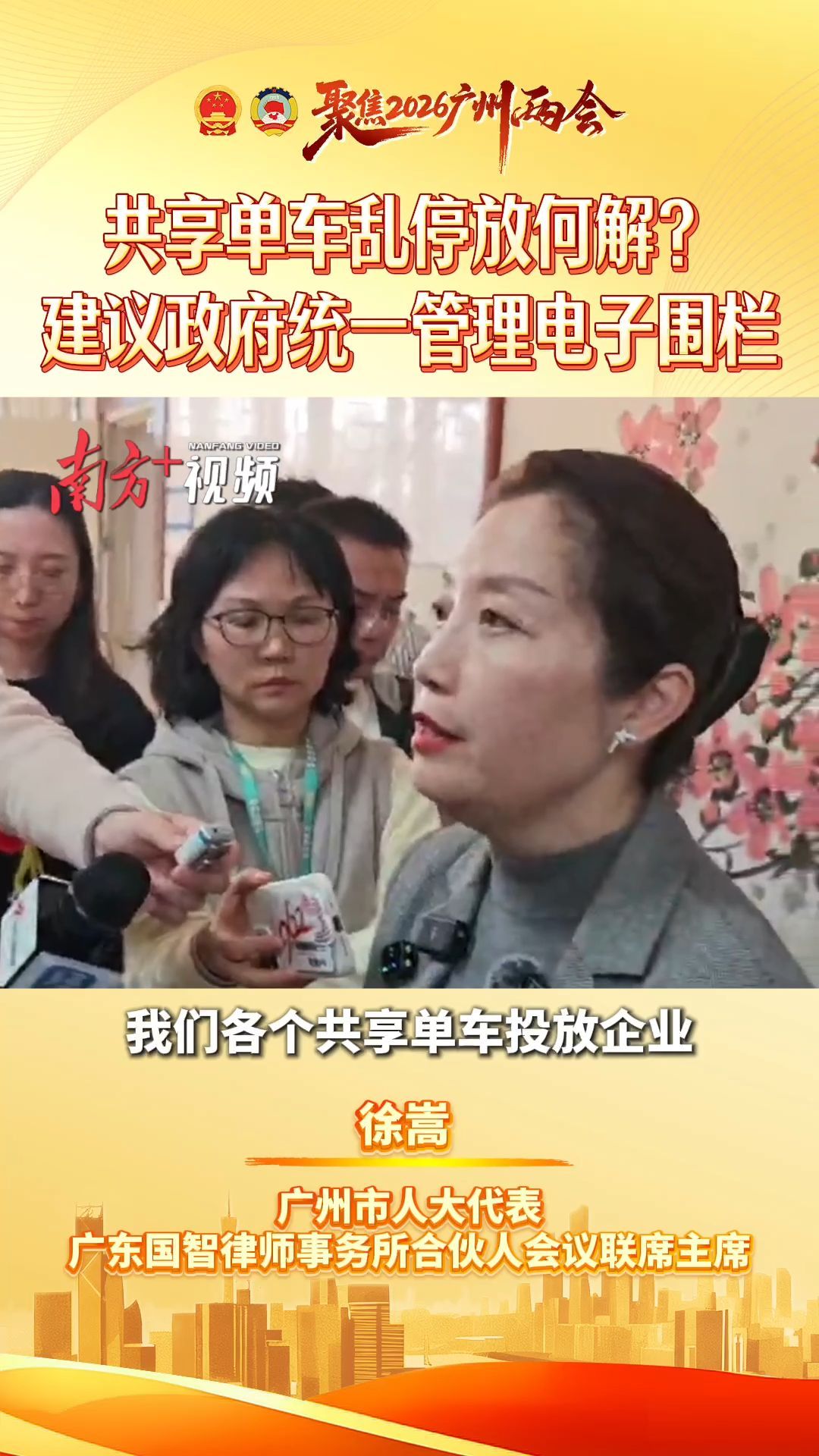 共享单车乱停放何解?人大代表徐嵩:建议统一规划共享单车电子围栏|2026广州两会,时长共1分14秒