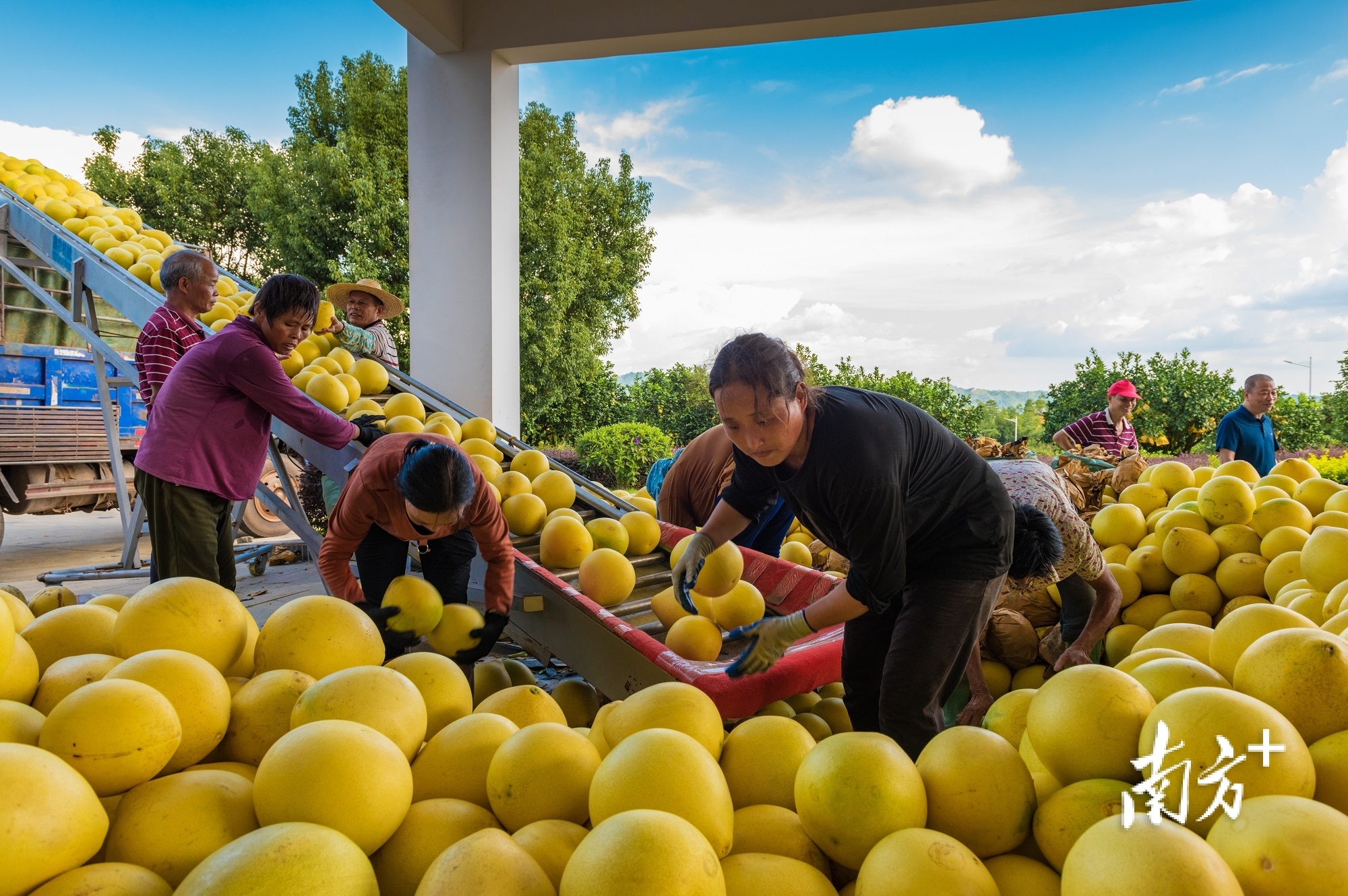 兴宁农户们采摘下黄橙橙的柚果。 受访者供图