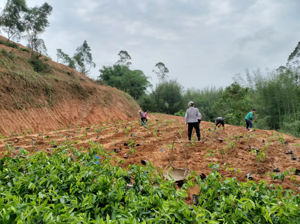 大片山坡上,沉香苗木成行成列,漫山遍野,工人们正忙着种植树苗和浇水……在黄田镇万洞村白石咀沉香种植场,昔日的山坡荒地如今焕发出别样生机。