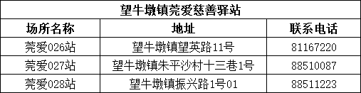 望牛墩镇还设有3个莞爱慈善爱心驿站