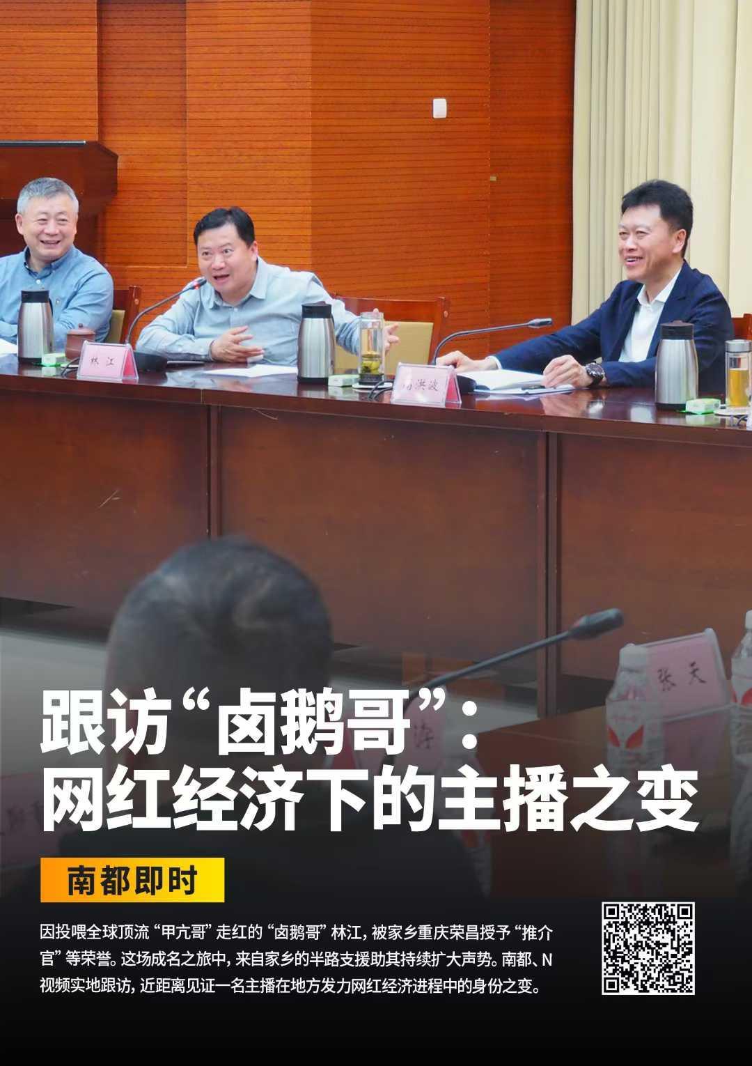 南都N视频记者今年4月曾前往荣昌,跟访走红网络的“卤鹅哥”,时任区委书记高洪波在接受南都记者采访时提到,他们要主动接住这波流量。今年60岁的高洪波还曾因带头下馆子等,引发网友关注。