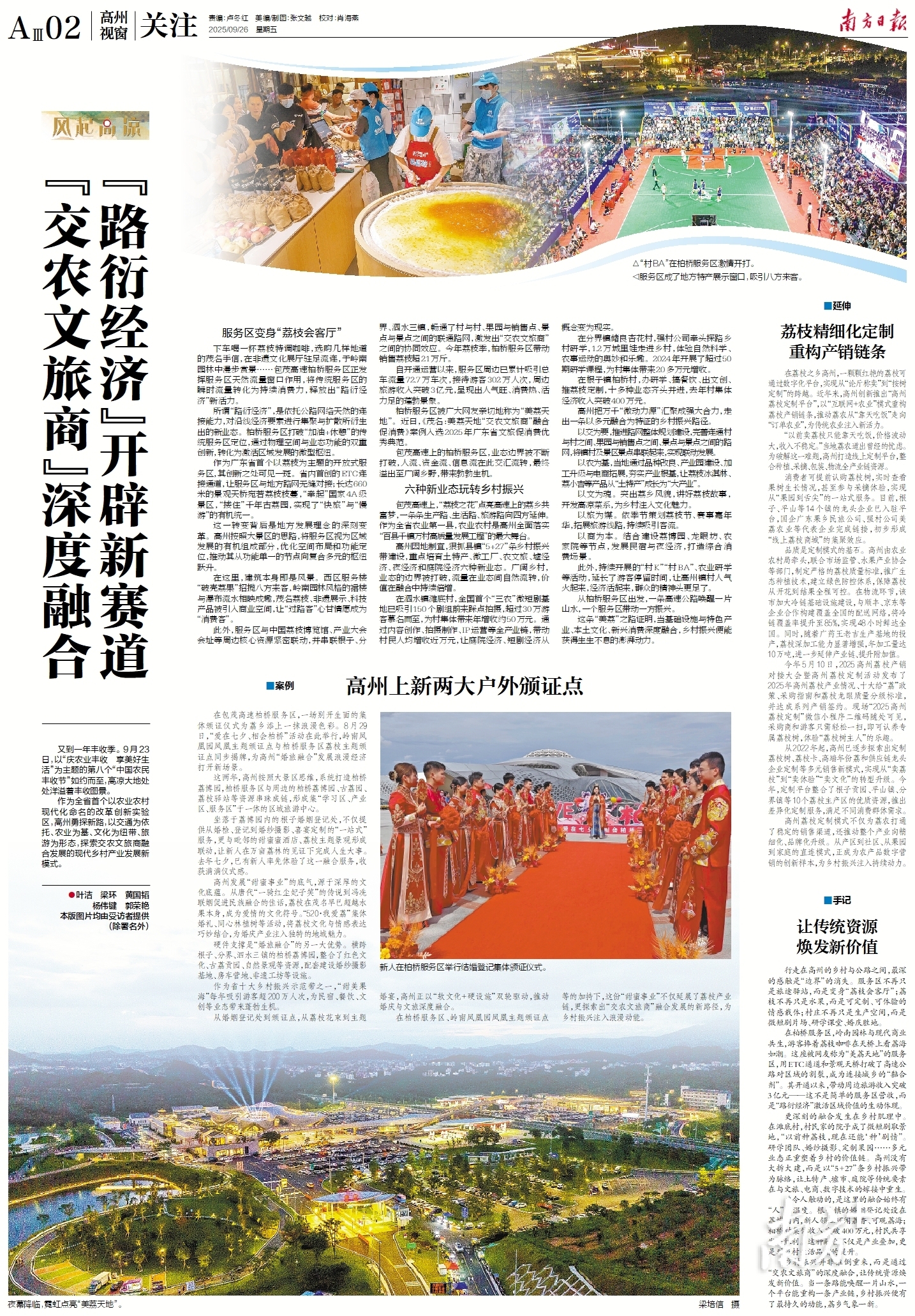 在柏桥服务区、岭南凤凰园凤凰主题颁证点等的加持下,这份“甜蜜事业”不仅延展了荔枝产业链,更探索出“交、农、文、旅、商”融合发展的新路径,为乡村振兴注入浪漫动能。