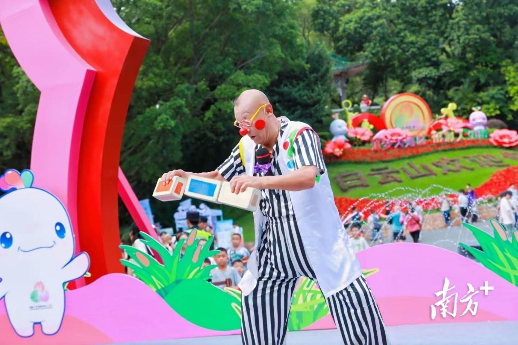 2025年10月2日,78岁的李春来在为市民表演滑稽艺术。受访者供图
