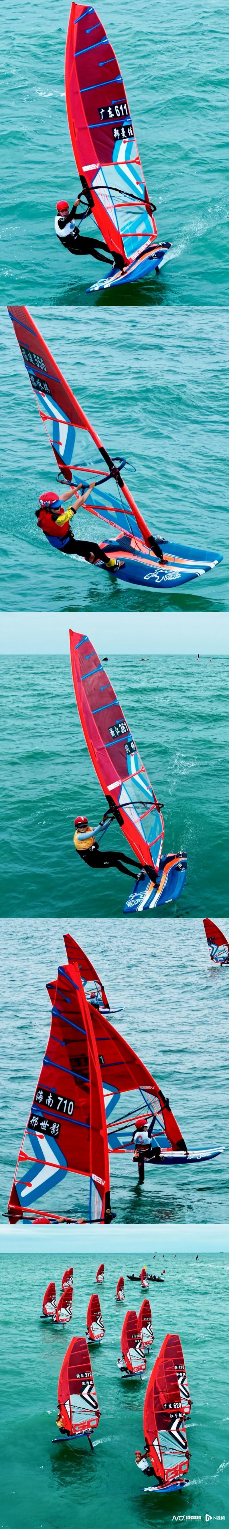 比赛现场。当日,男子水翼风筝板级、女子水翼风筝板级、男子水翼帆板级、女子水翼帆板级共4块金牌决出。其中,广东队选手毕焜斩获男子水翼帆板级1枚金牌、江千帆获1枚铜牌;王思、伍嘉慧分别获得一枚女子水翼风筝板、女子水翼帆板银牌。