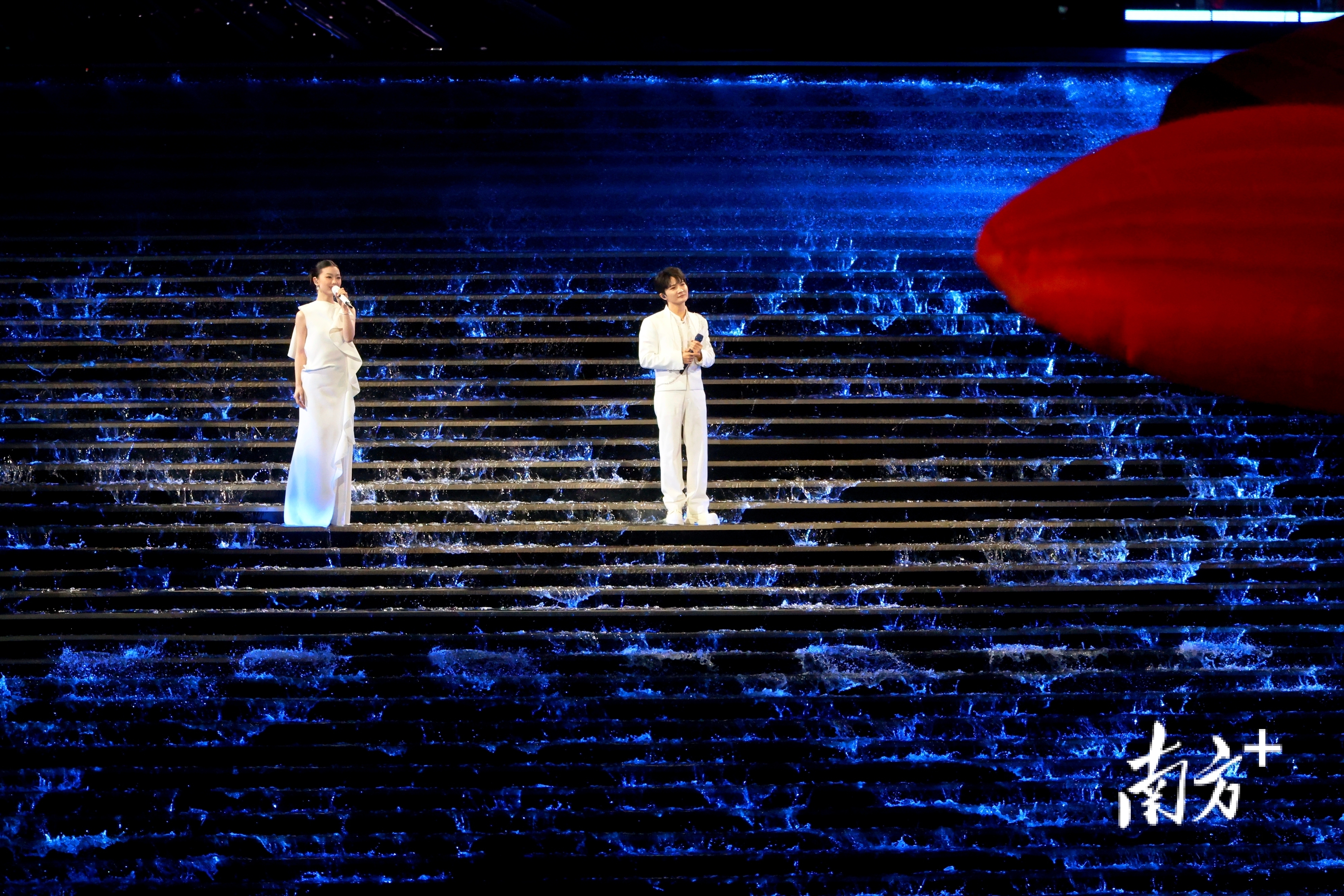 歌手周深和单依纯演唱十五运会开幕式主题歌《天海一心》。