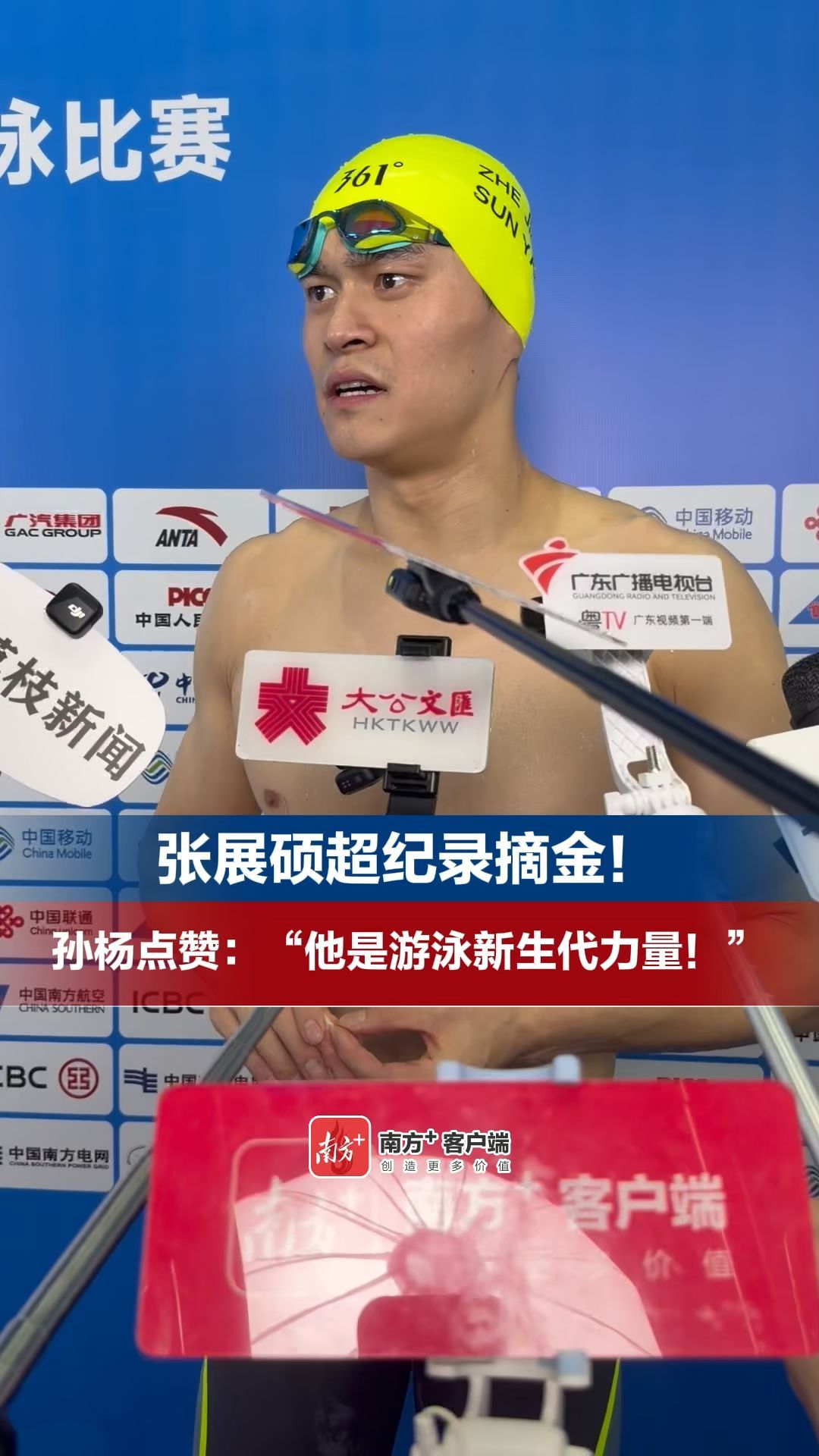 张展硕超纪录摘金!孙杨点赞:“他是游泳新生代力量!”