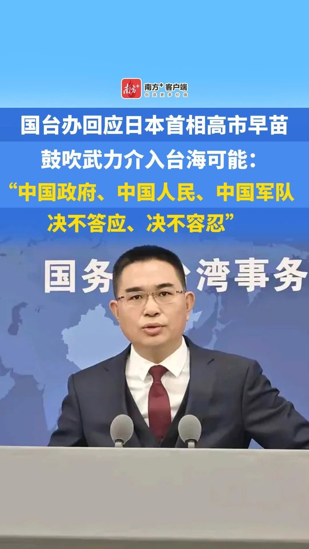 国台办回应日本首相高市早苗鼓吹武力介入台海可能:“中国政府、中国人民、中国军队决不答应、决不容忍”