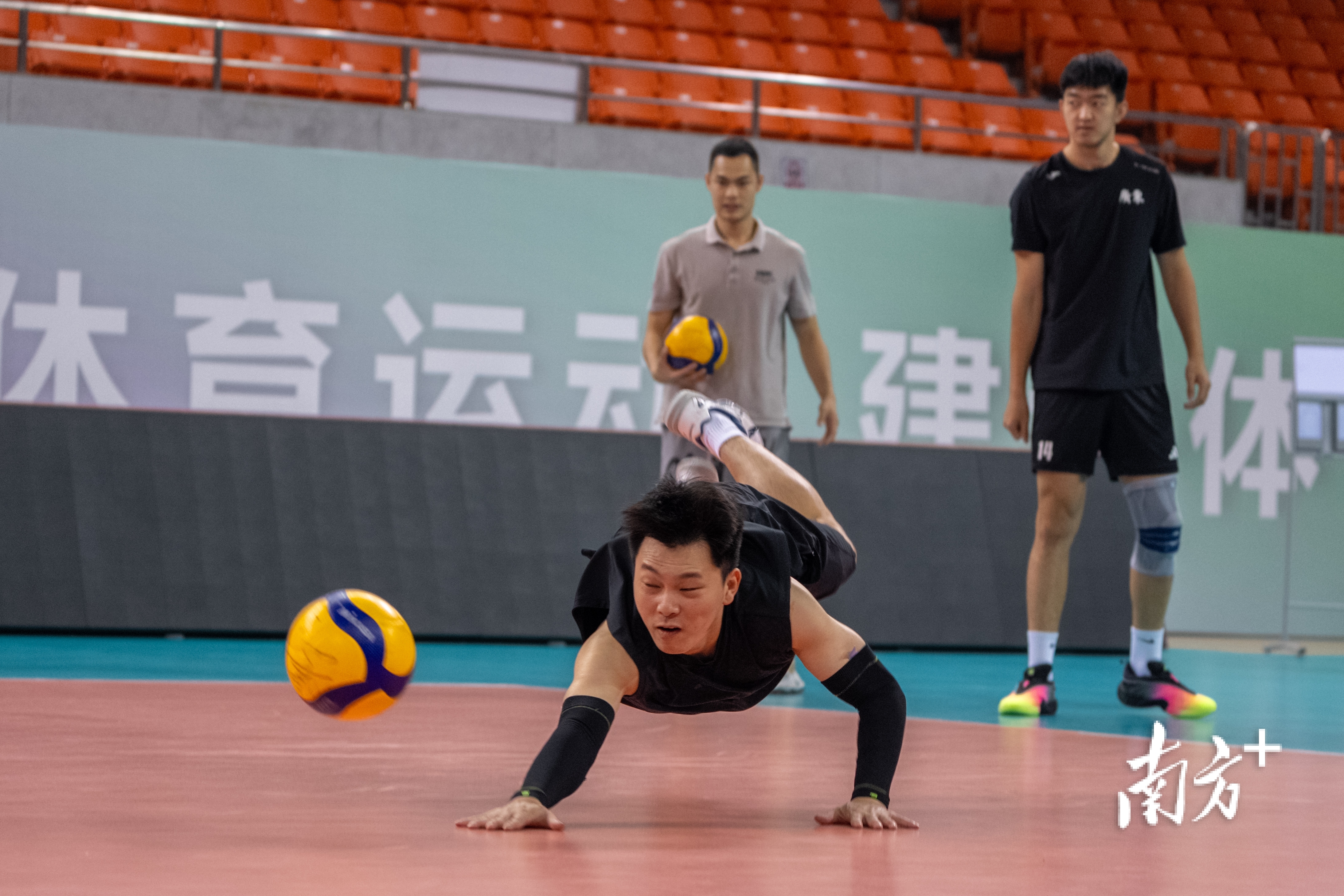 上午10点,广东男排开始了一天的训练。