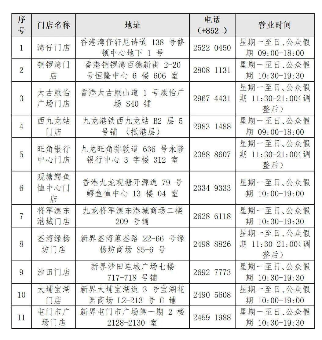 香港中国旅行社11家网点信息(仅销售香港赛区门票)