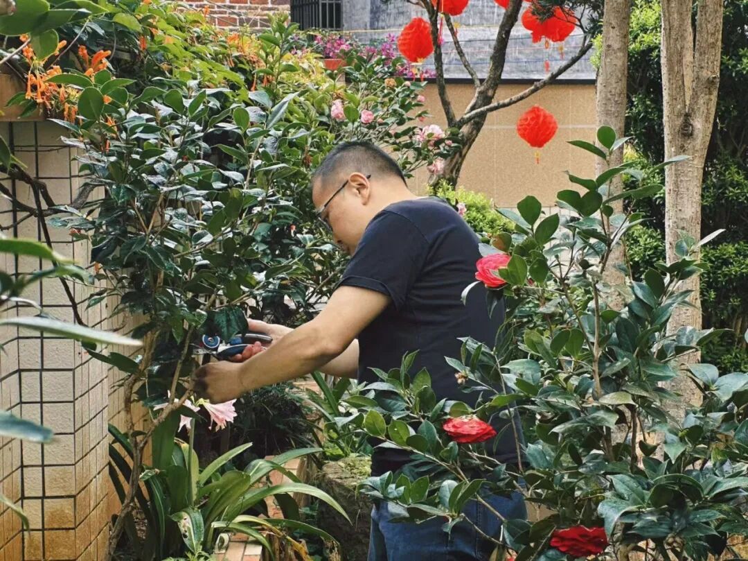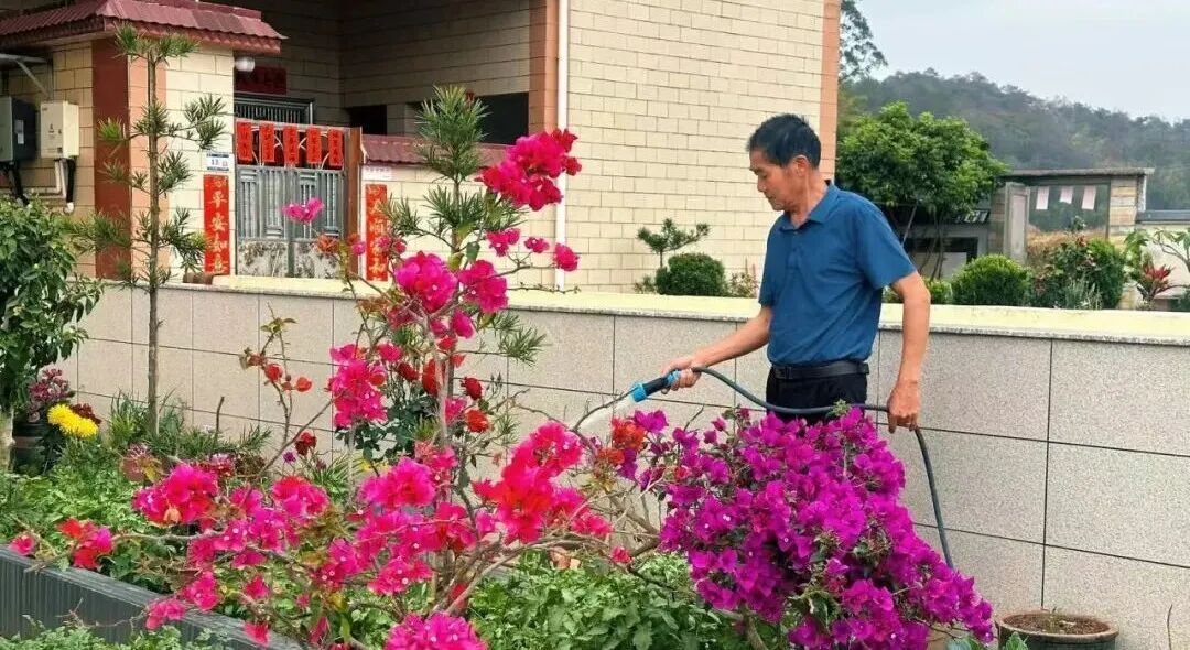 在众多花草中,陈叔最偏爱含笑花,开花时会散发淡淡的甜香,他总爱挑选色彩鲜艳的花种,还会按照四时季节选种鲜花,一茬鲜花凋谢便更换新的一茬,让自家小院四季都色彩缤纷。今年春节,亲戚们探亲走访,看到这方精美雅致的庭院,无不称赞,都说陈叔把乡村生活过出了大家羡慕的样子。