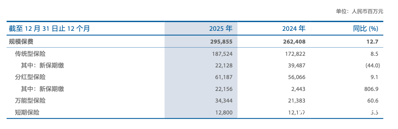 中国太保在财报中表示,去年公司产品转型成效显现,产品结构持续优化,浮动收益型产品占比显著提升;强化业务品质管理,保单继续率保持高位。按业务类型来看,2025年,太保寿险商保年金新保规模保费430.42亿元,同比增长93.4%;健康险新保规模保费138.45亿元,同比增长2.8%;分红型保险新保期缴规模保费221.56亿元,新保期缴中分红险占比提升至50.0%。