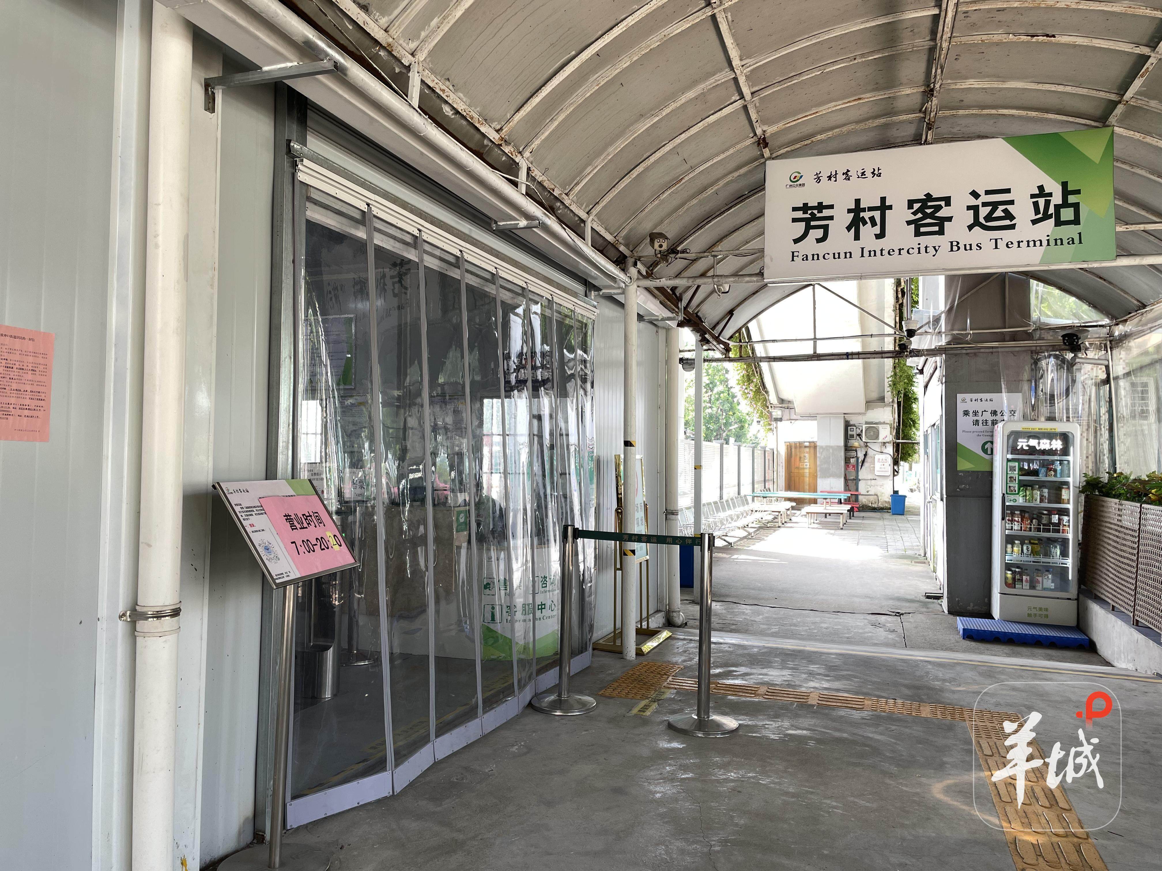 在站厅大楼旁的板房,已设置为候车厅,营业时间为7:00-20:20。记者在候车厅外看到,有网上购票的指示牌和自助售票机,其中省内班线有到江门、阳江、肇庆、清远、梅州、韶关的班车;省际班线有到福建、湖北、湖南、江西、四川、海南的班车。