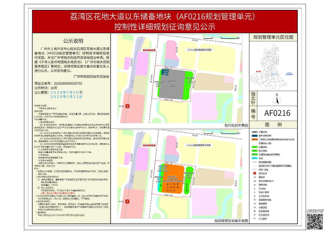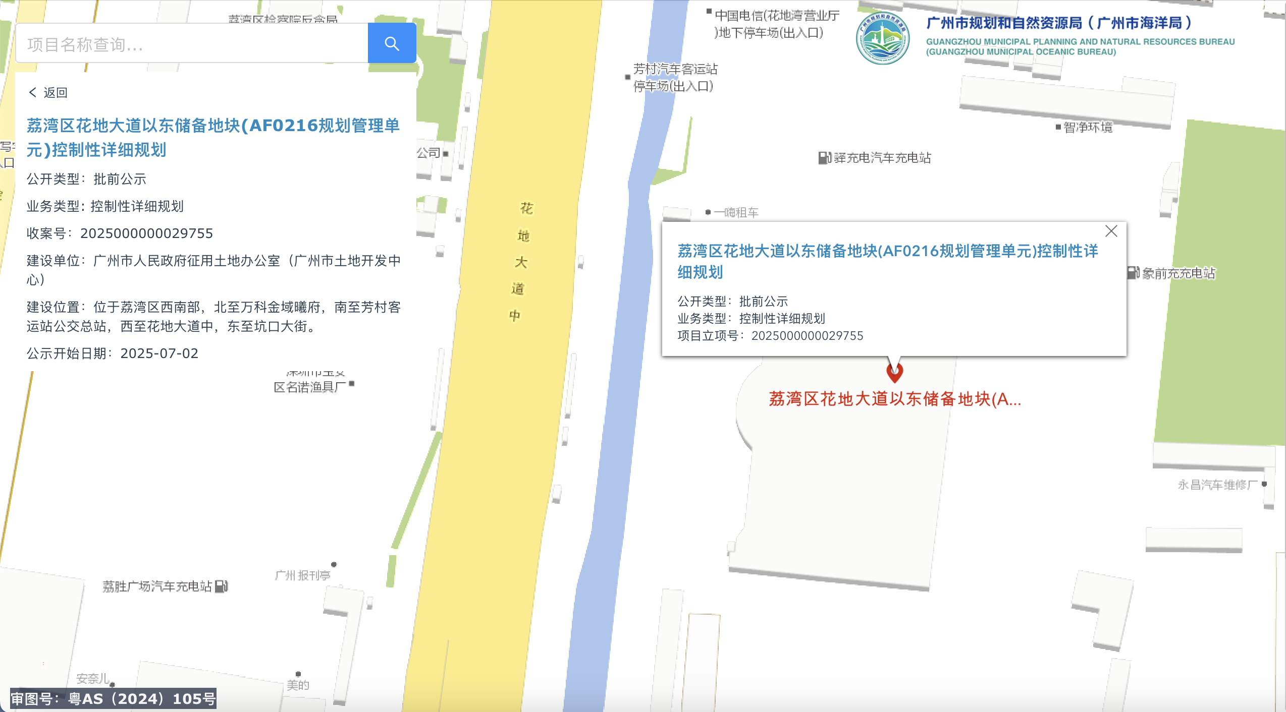 今年7月,广州市规划和自然资源局在官网公示《荔湾区花地大道以东储备地块(AF0216规划管理单元)控制性详细规划》(广州市规划和自然资源局官网截图)