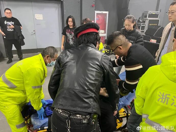 知名摇滚乐队丝绒公路乐队吉他手毛毛(周若尘)意外摔下舞台。