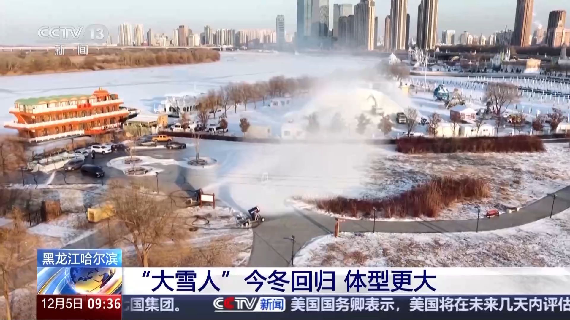 总台记者 马寅骁:在哈尔滨市松花江边,造雪机已经开始作业。今年大雪人将“膨胀”归来,身高体重都有所增加。用雪量将超3000立方米。
