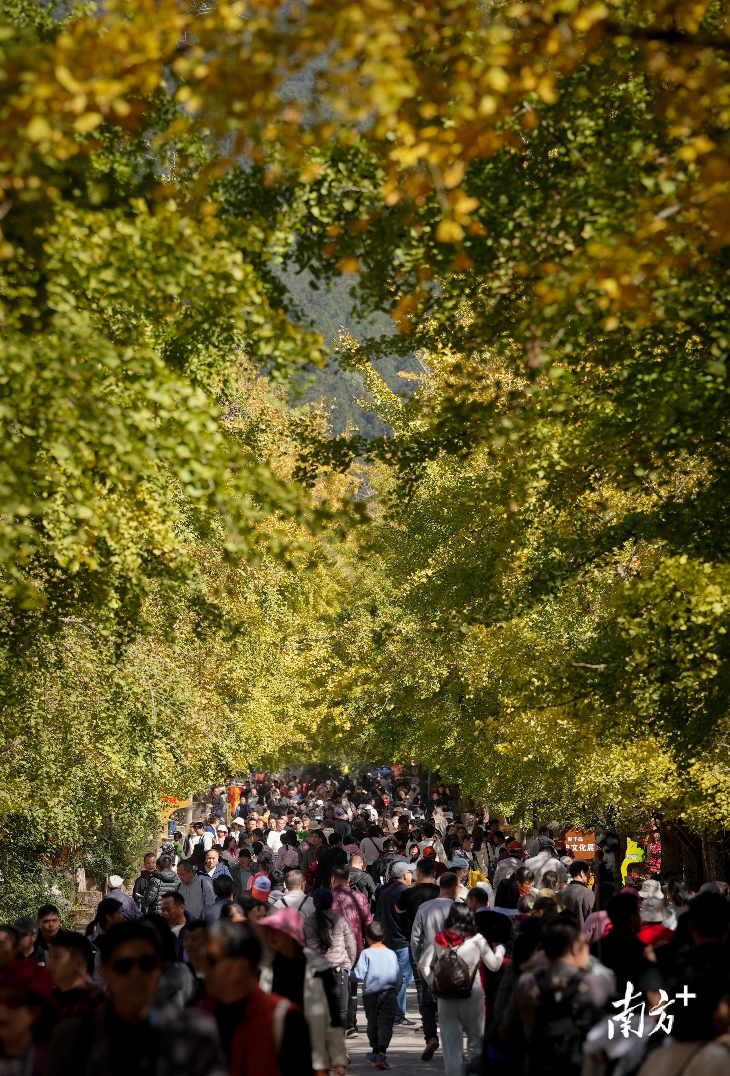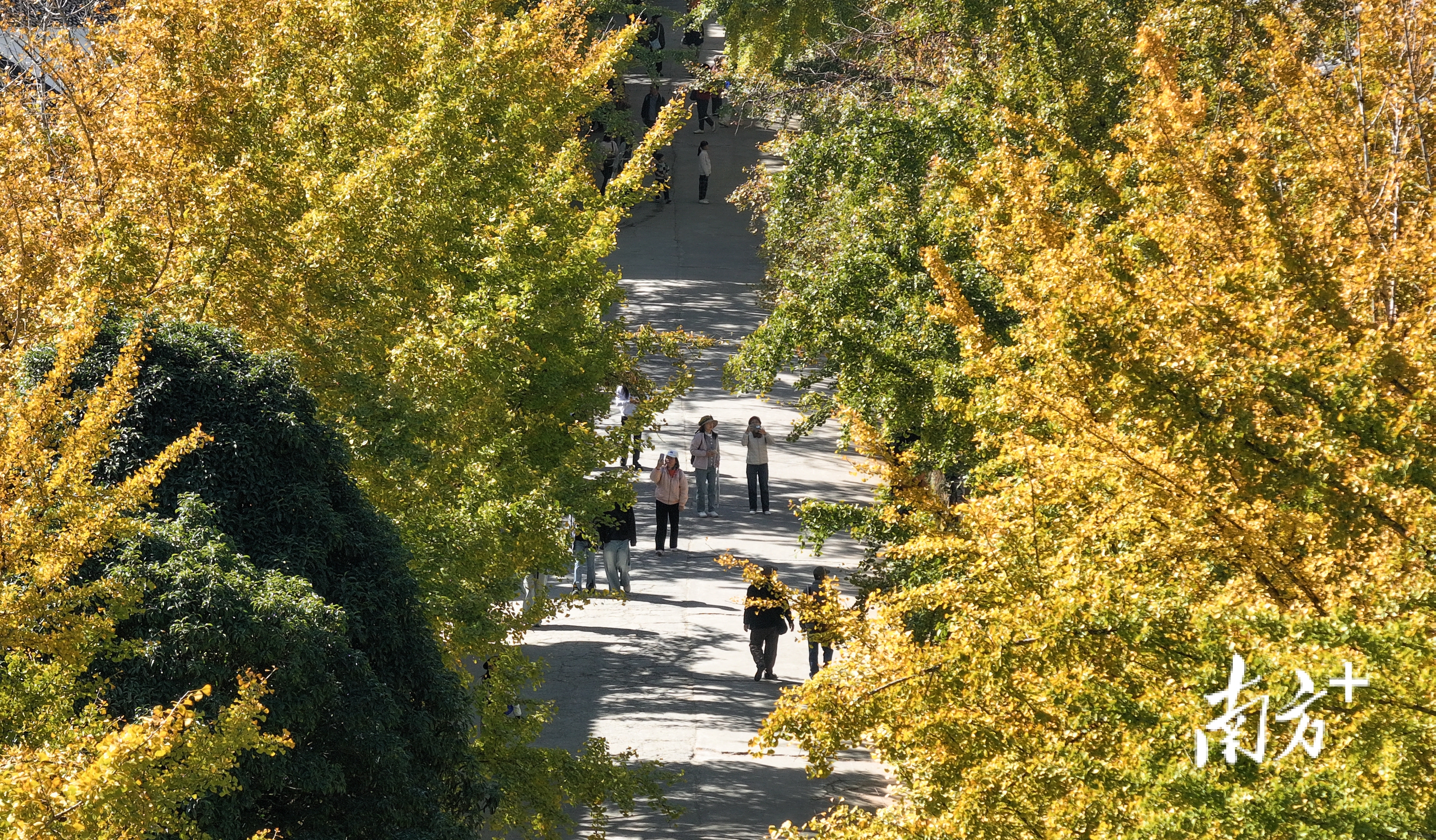 目前,“黄金大道”的银杏已换上金装,迎来大量游客赏景。