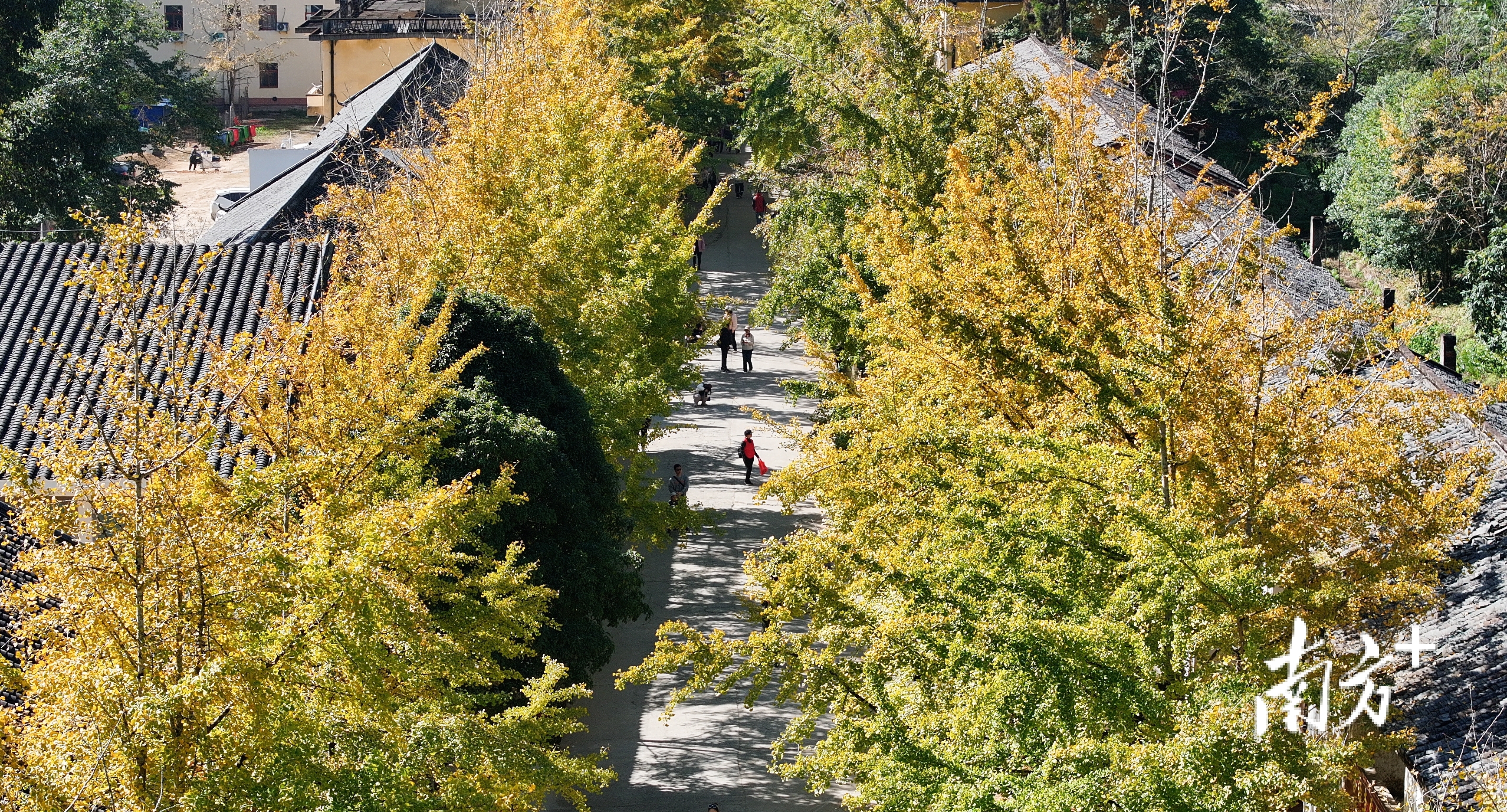 初冬,韶关南雄的银杏逐渐迎来最佳观赏期。南雄帽子峰的“黄金大道”是最负盛名的银杏观赏点。