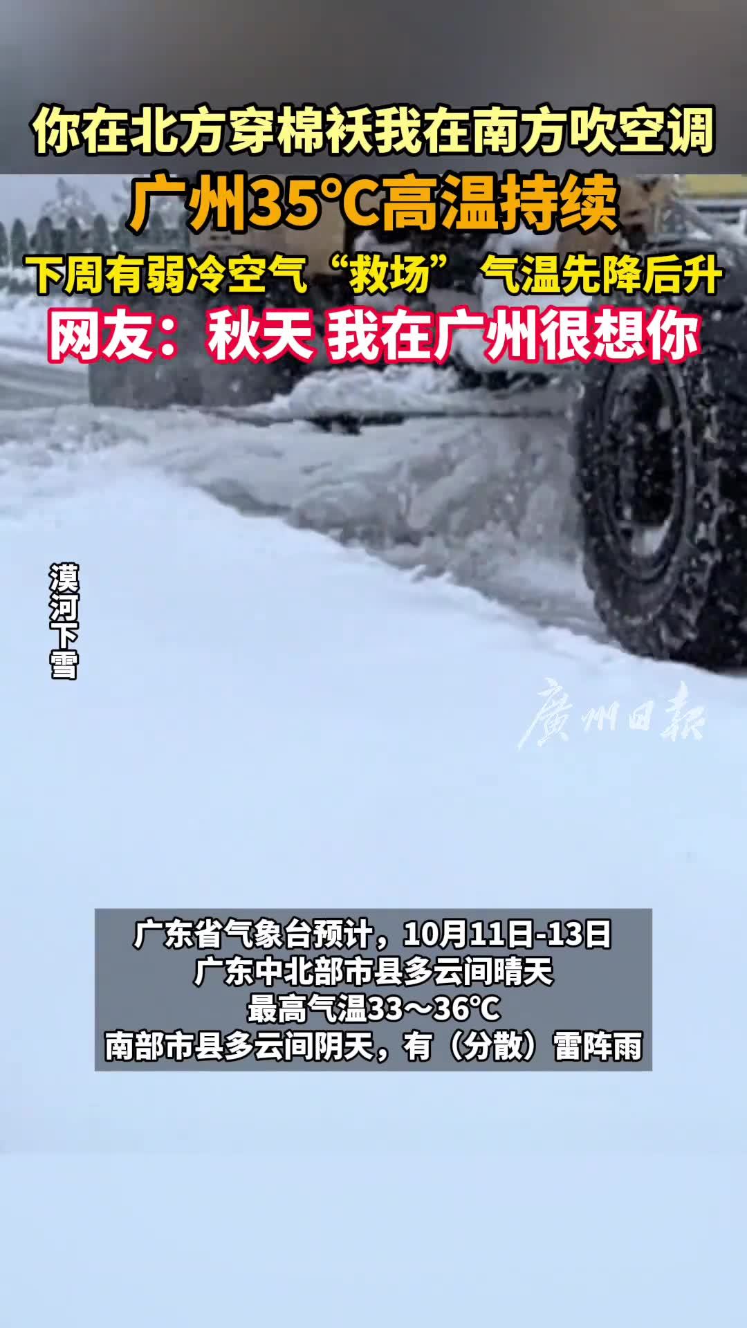 近期,北方有些地区已银装素裹,广东还在穿短袖开空调。不少网友关心:广东何时才能入秋?还要热多久?对此,广东天气回答:11月前后。
