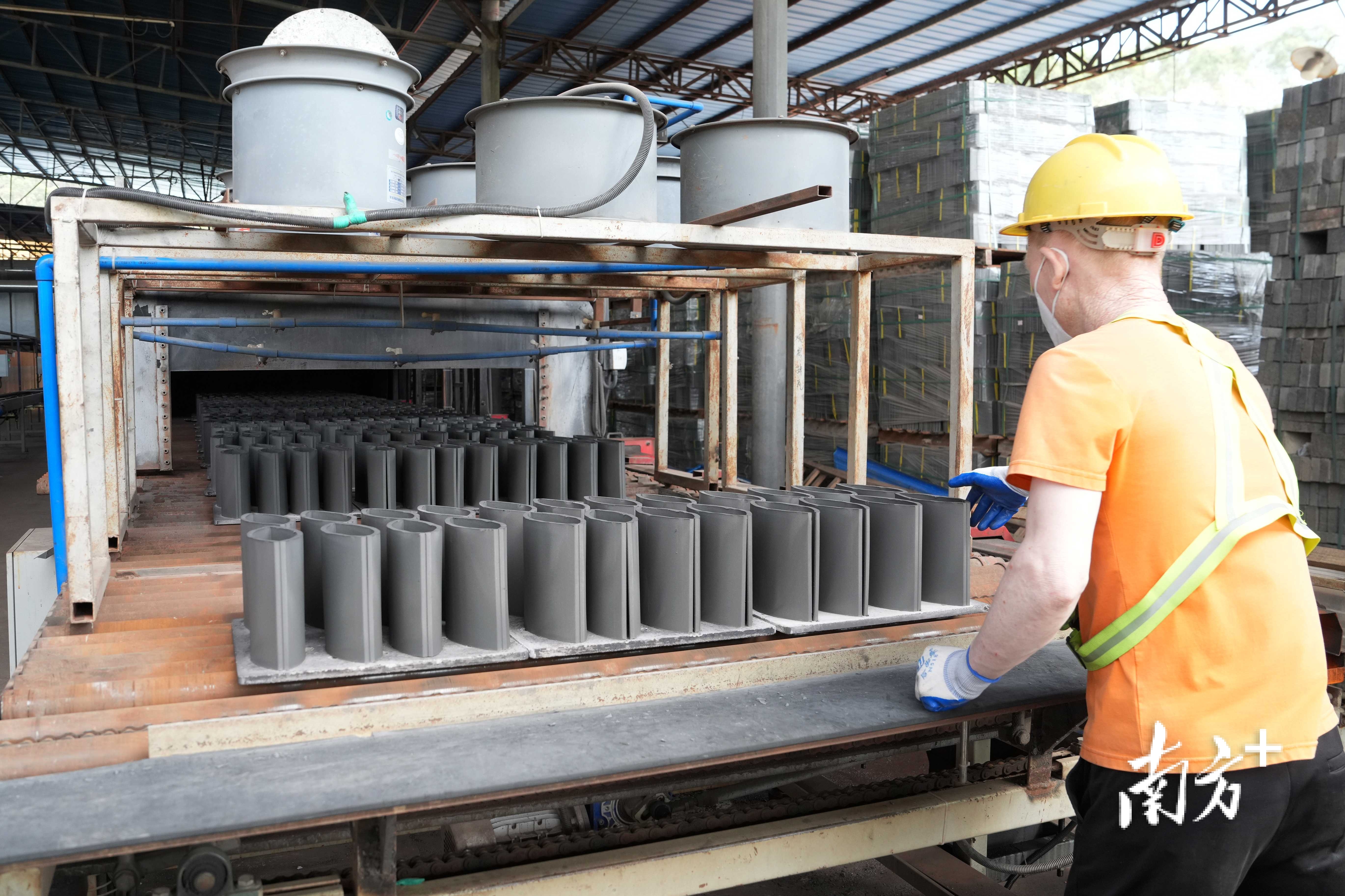 有别于传统青瓦制作,龙门古建厂花重金购入先进生产线,不仅大大提高了生产效率,同时也确保制作工艺更加环保。“我们厂在保留‘水磨’这一核心古法的同时,采用现代球磨技术研磨出细腻的泥浆。”据青瓦生产线经理欧俊威介绍,通过旋转和钢球的撞击,可以提高原材料的细度与活性,有利于后续成型、烧制,经过球磨、脱水,到压制、烘干等数道工序,原料才能成型。